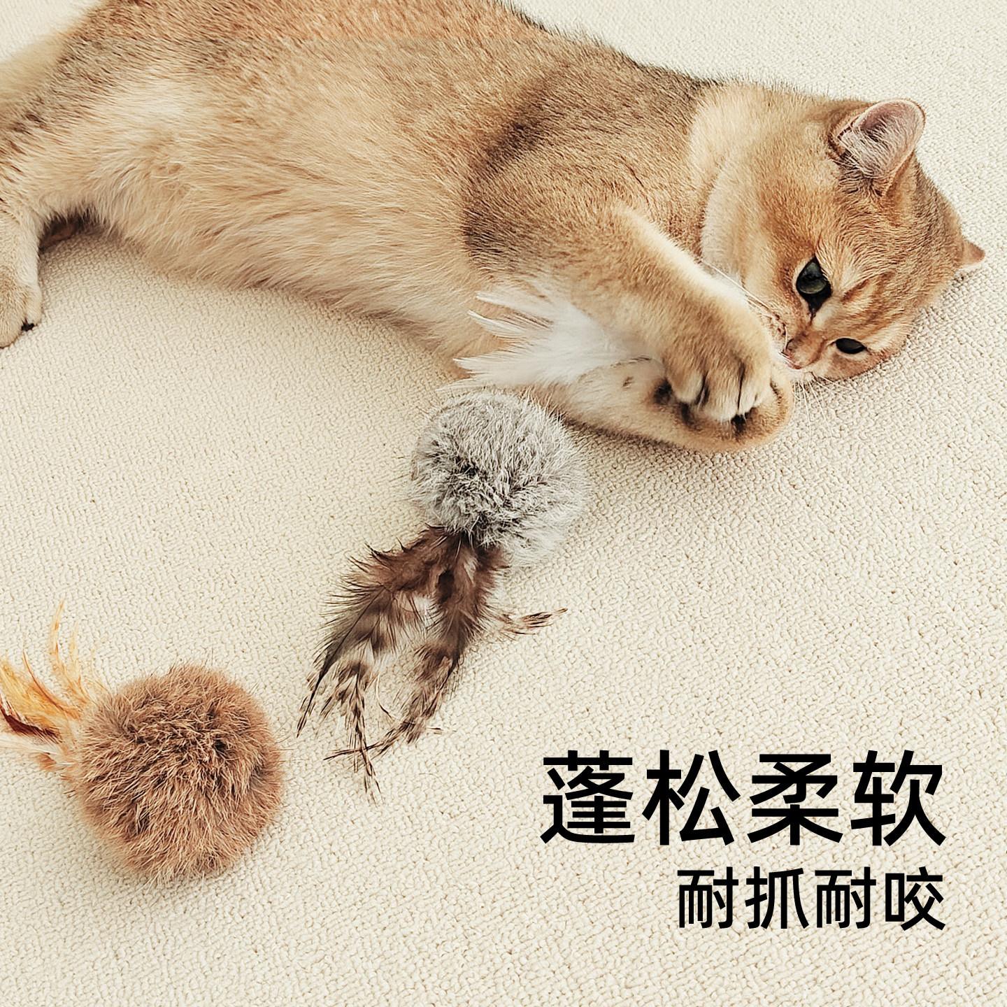 淘宝真兔毛球丰容玩具宠物耐咬猫咪自嗨解闷小猫羽毛逗猫棒静音猫玩具