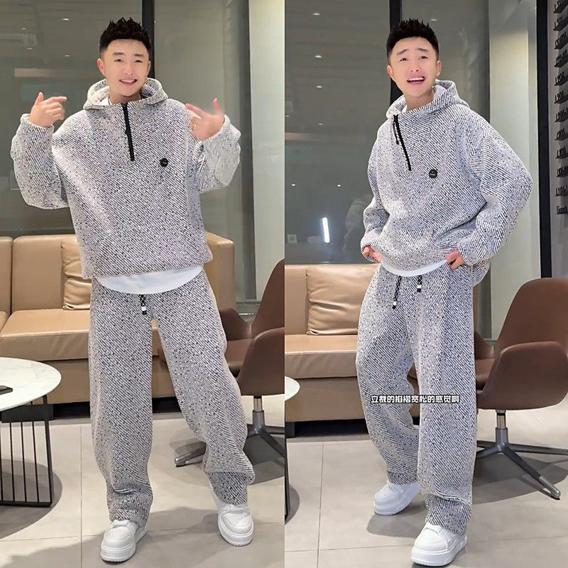 淘宝2025春秋满天星重磅休闲运动套装男高级感潮牌连帽卫衣阔腿休闲裤