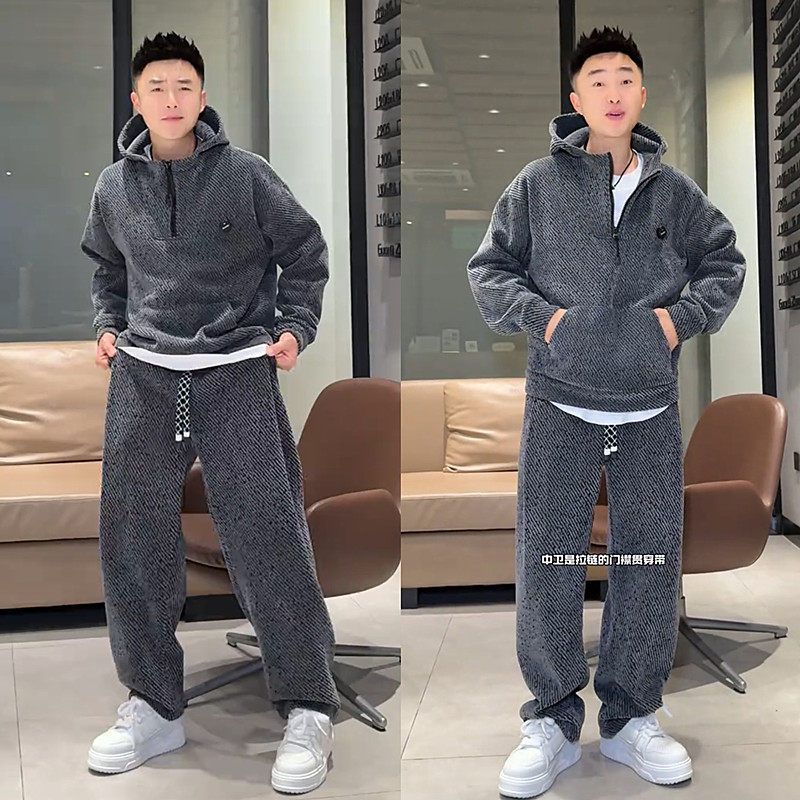 天Jeep吉普加厚套装男生新款连帽运动服卫衣男款加绒直筒裤休闲男装