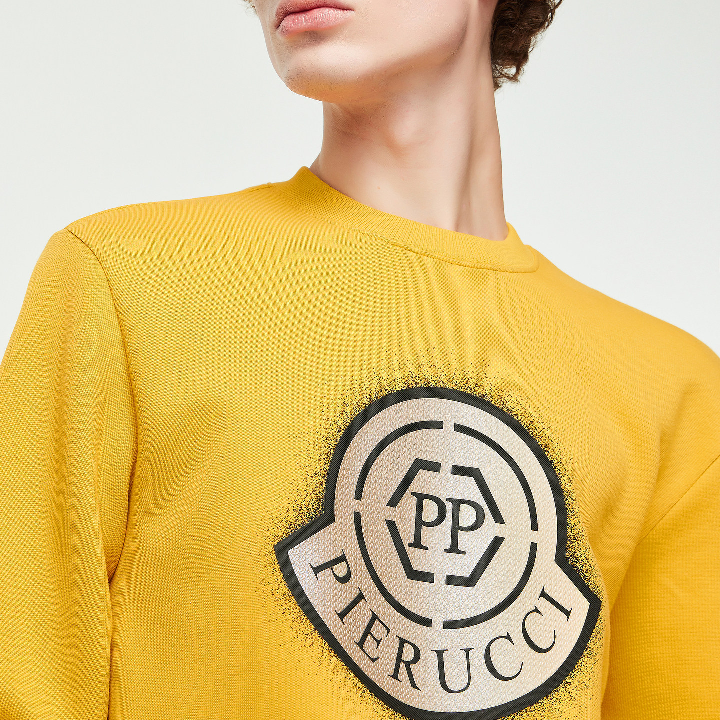 天猫PP意大利轻奢品牌男装2025秋冬新款简约字母LOGO薄绒圆领长袖卫衣