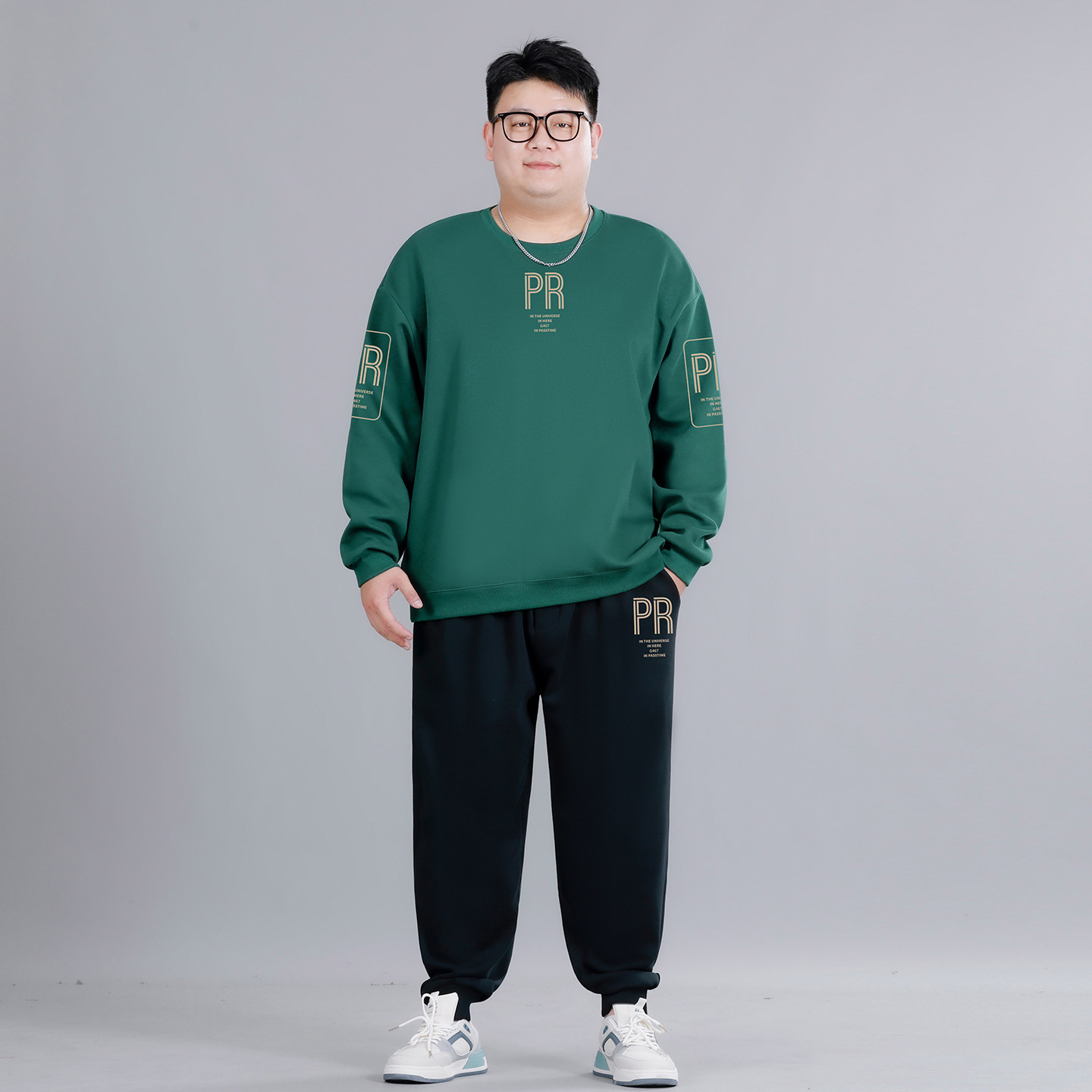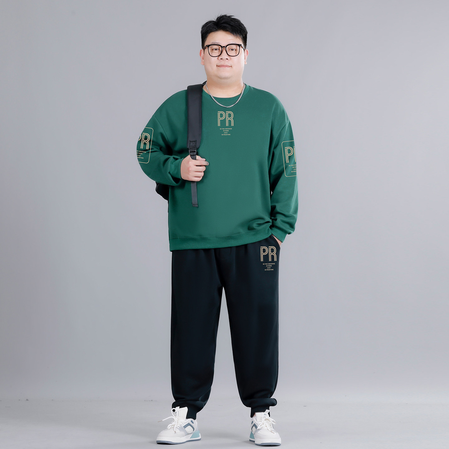 大码休闲运动套装男加肥加大宽松春秋款男士男装胖子卫衣套装潮牌