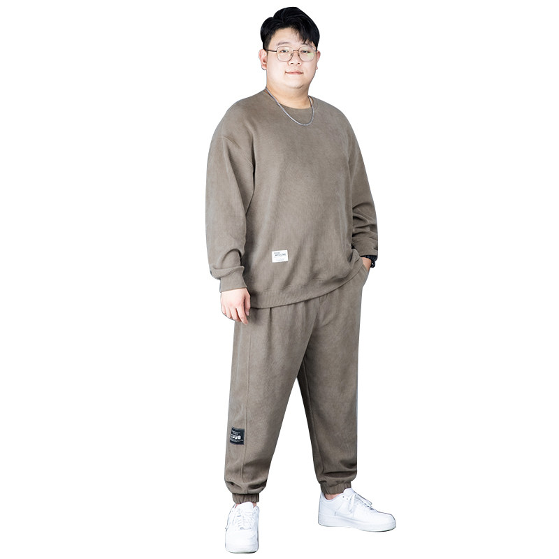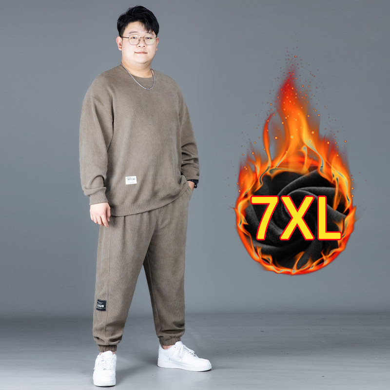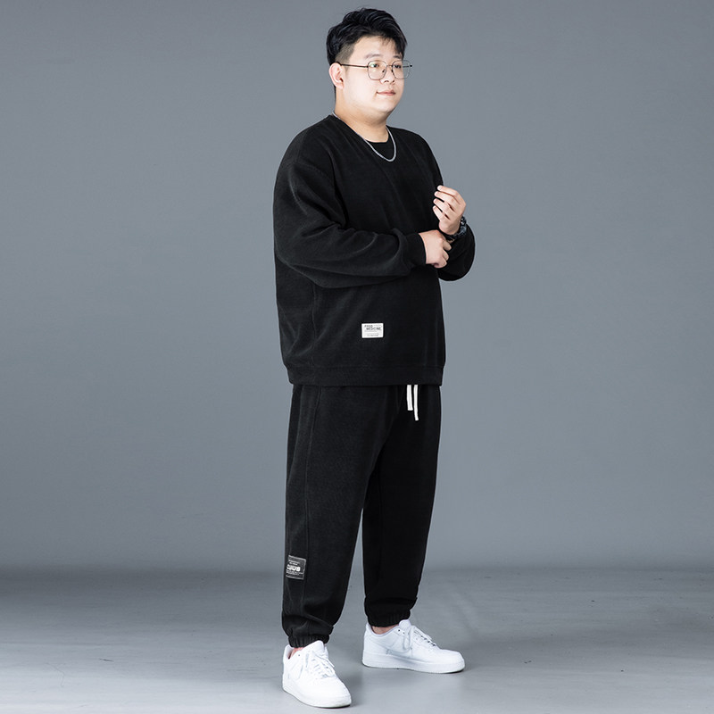 淘大码休闲运动套装男秋冬加绒加厚胖子宽松加肥加大卫衣长裤两件套