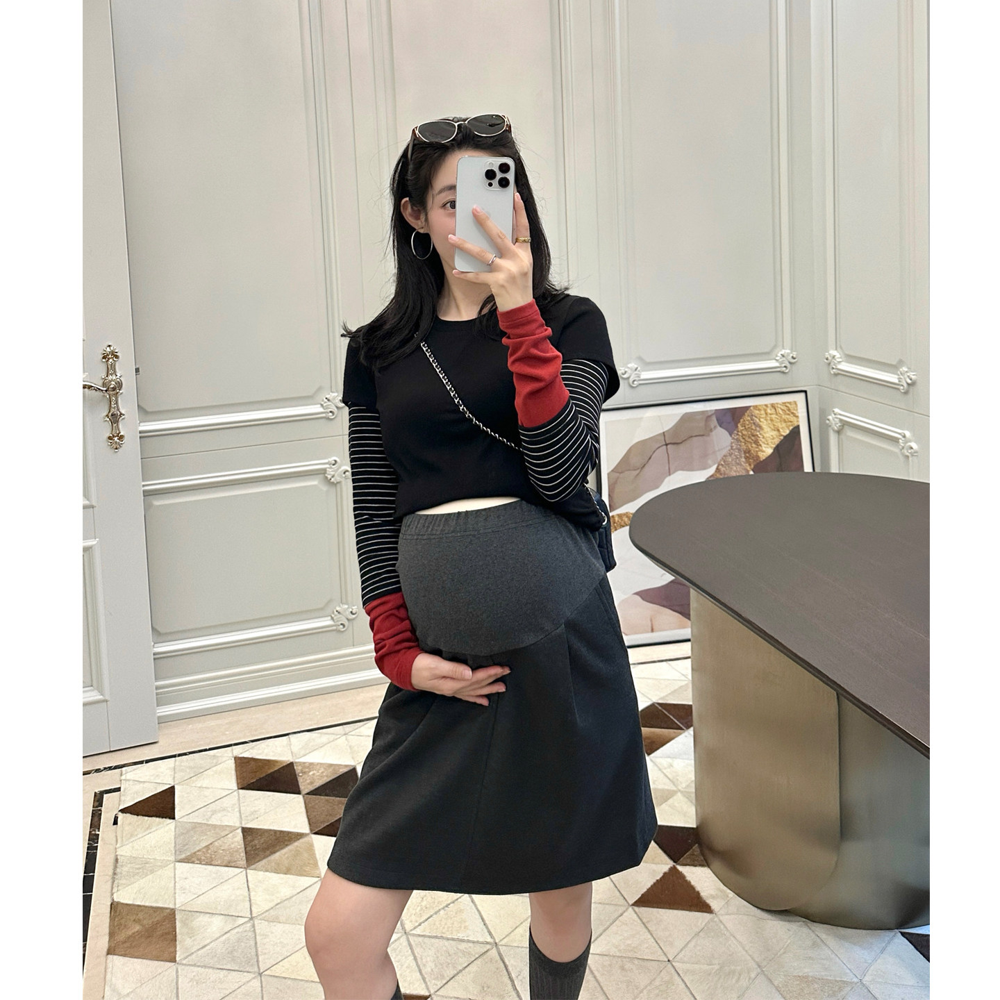 LeoMami孕妇装秋冬款醋酸羊毛半身裙,融合复古设计与现代舒适理念,专为孕期女性打造。采用高品质醋酸羊毛混纺面料,柔软亲肤、保暖透气,兼具垂坠感与弹性,轻松贴合身形变化。A字包臀版型巧妙修饰孕肚,拉长腿部线条,展现优雅气质。复古色调搭配精致剪裁,既减龄又不失知性韵味,适合通勤、约会等多种场合。高腰设计提供贴心支撑,穿着无束缚感。无论是搭配针织衫还是大衣,都能轻松穿出时尚孕妈的独特魅力,是秋冬孕期的理想之选。