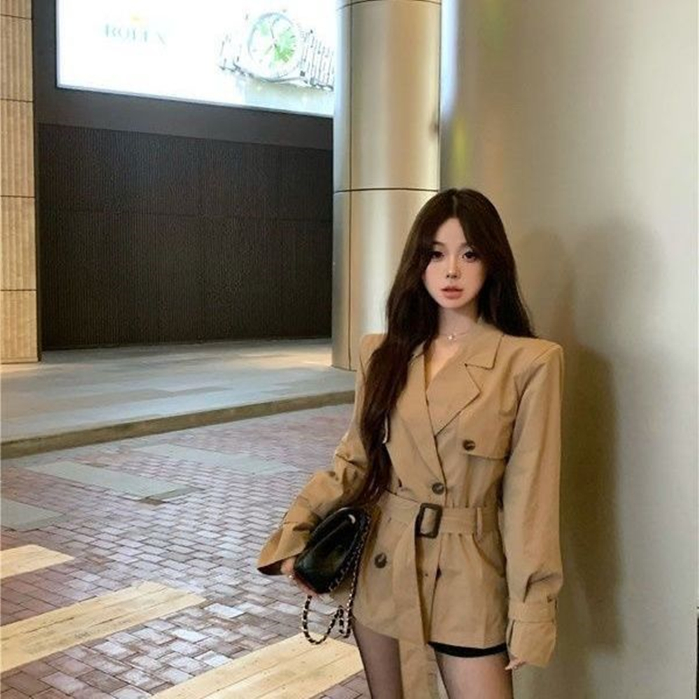 英伦风卡其色风衣外套裙,专为春秋季节设计,适合小个子女生。这款气质收腰短款工装大衣展现出独特的时尚感。其精致的剪裁与流行的卡其色相得益彰,营造出时尚又经典的氛围。女装外套不仅保暖舒适,更凸显女性的优雅气质。短款设计完美展现身材比例,让女生更加自信迷人。无论是休闲出行还是正式场合,这款风衣外套裙都是您的不二之选,展现您的独特魅力与个性风采。超好看的一款大衣,值得您拥有。