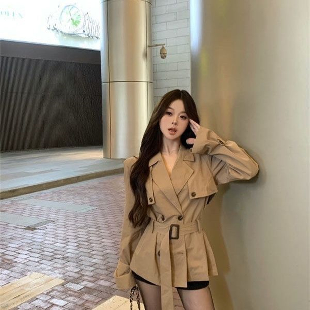 淘宝英伦风卡其色风衣外套裙女春秋小个子超好看气质收腰短款工装大衣