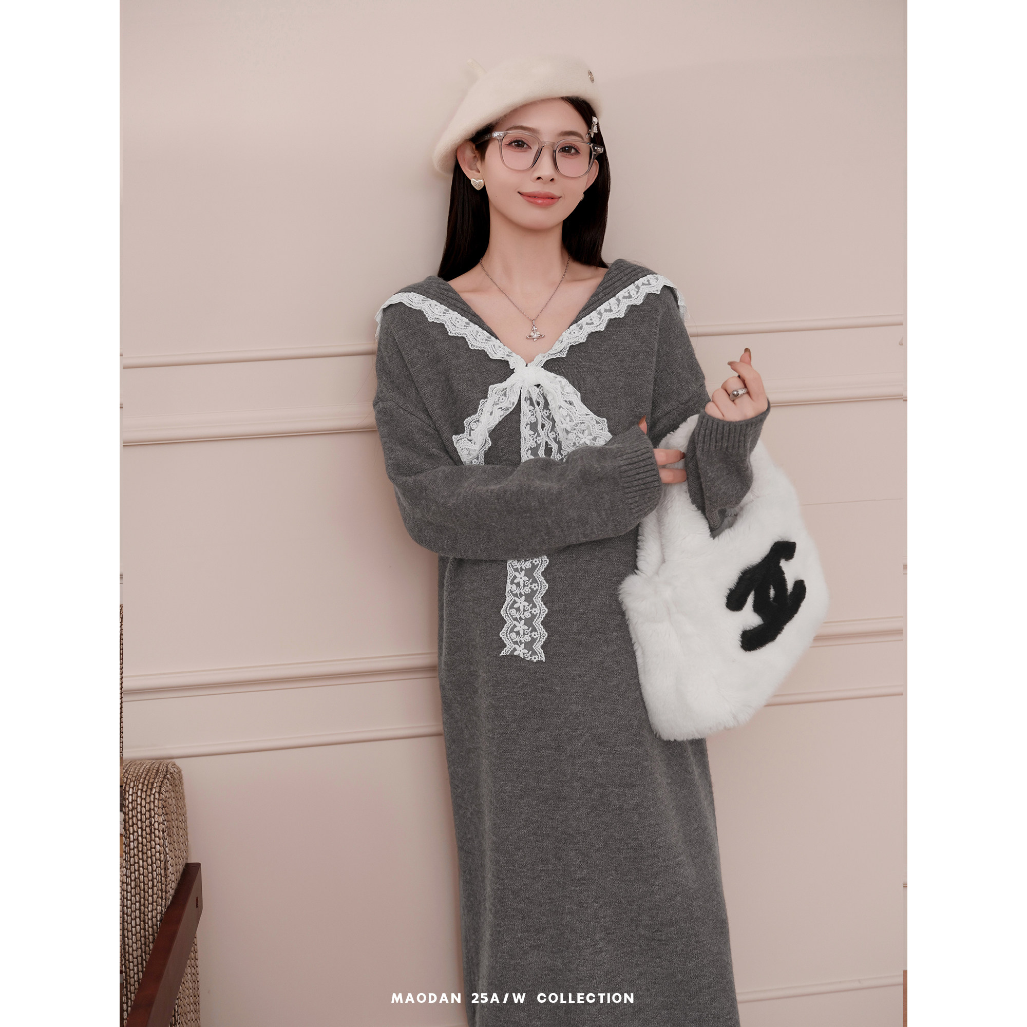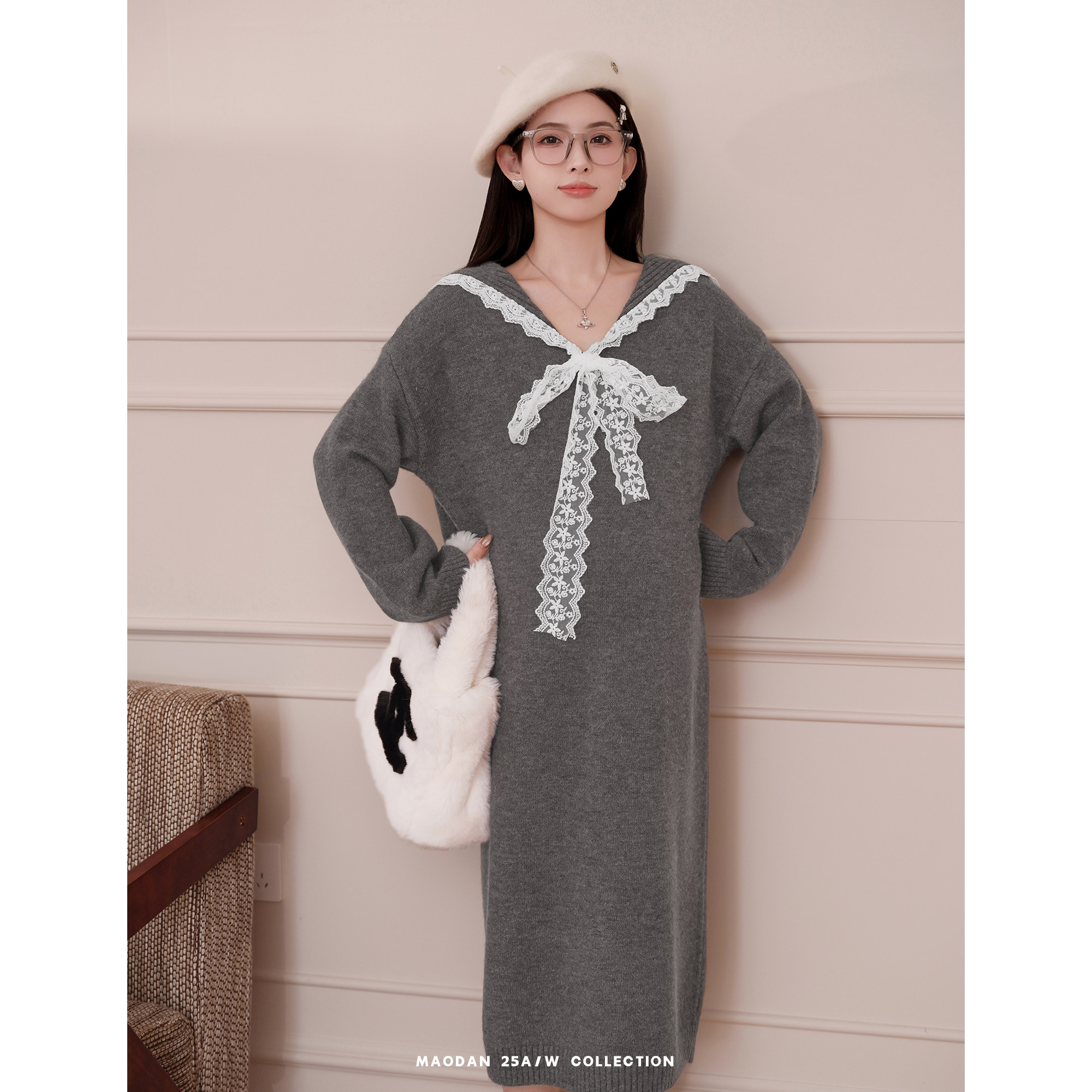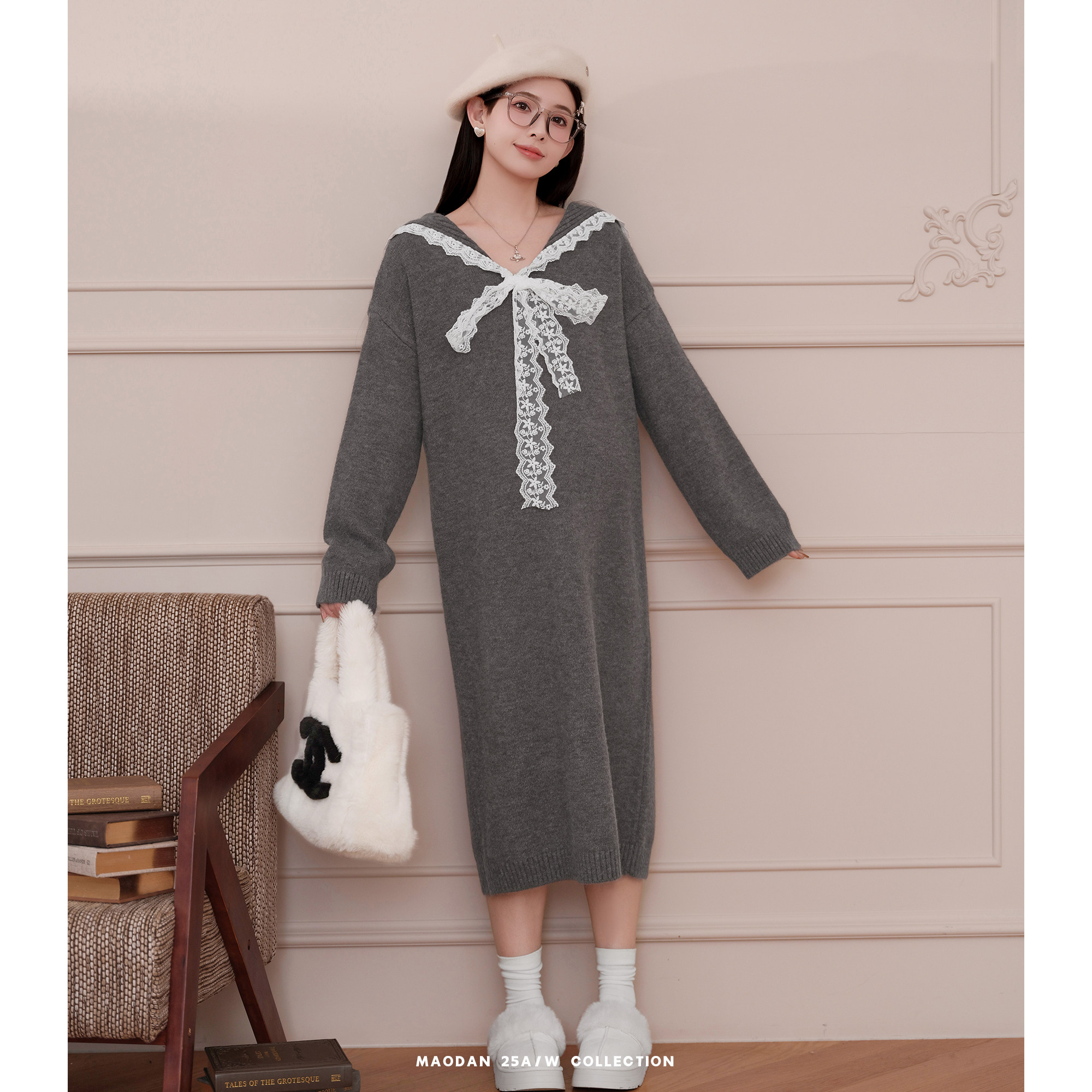 淘宝猫单【苔原甜梦】娜娜的孕期穿搭孕妇装秋冬蕾丝拼接毛衣连衣裙新