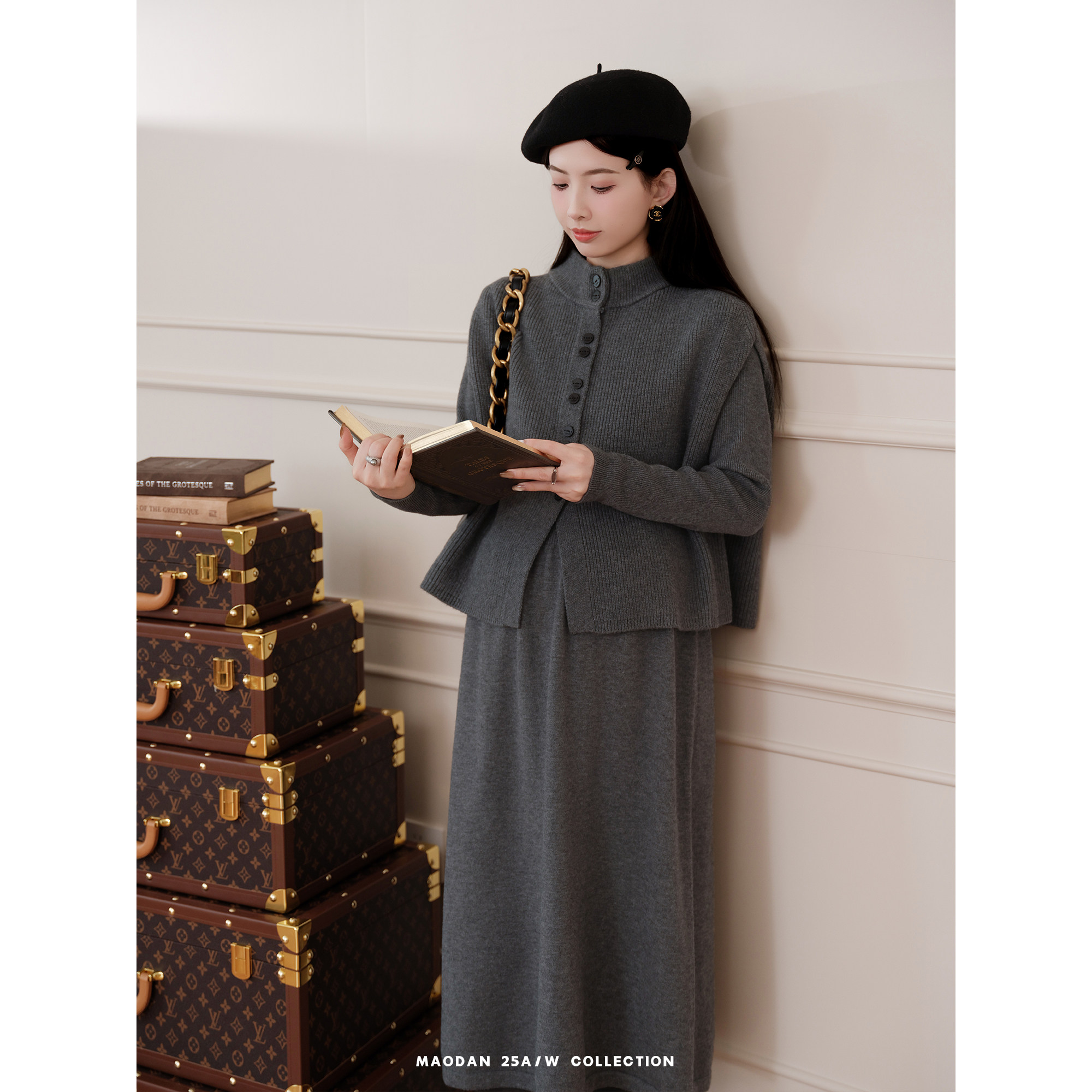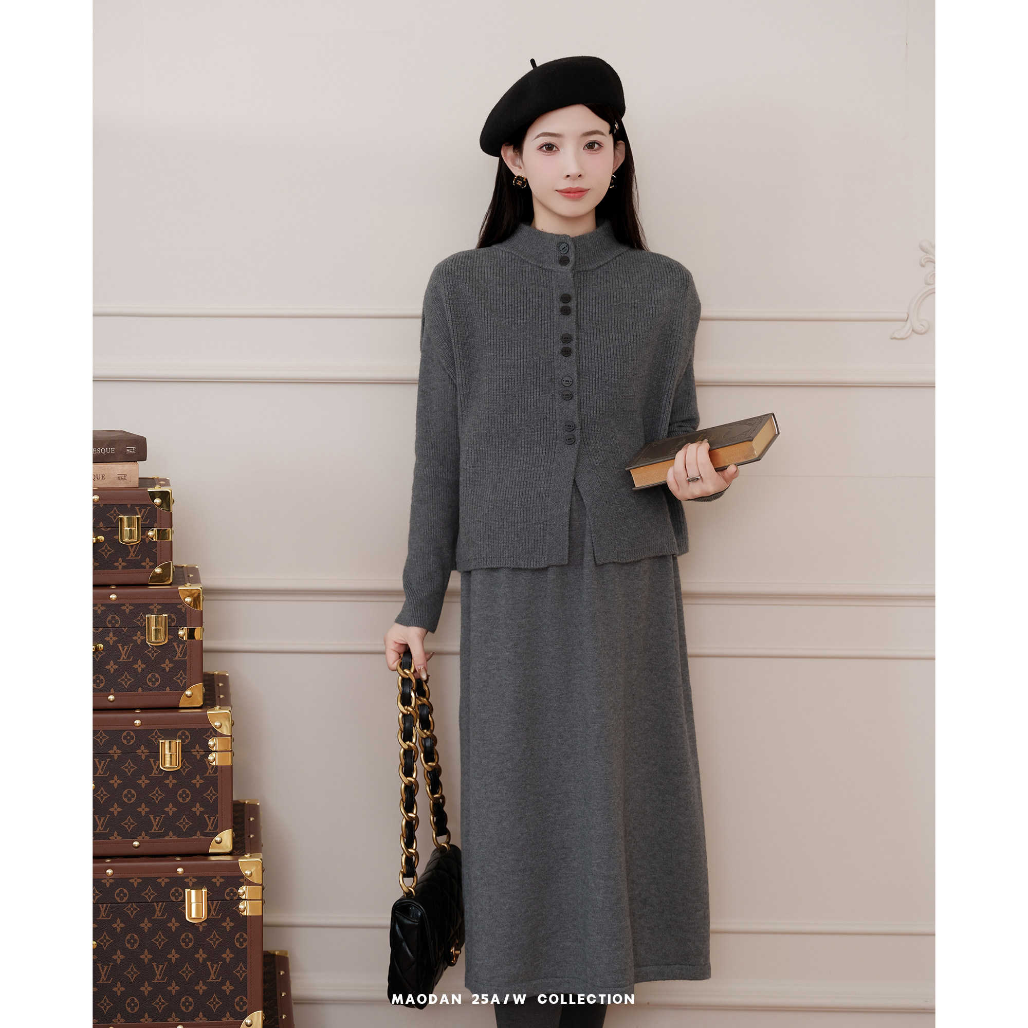 猫单【利兹周末】【羊毛】娜娜的孕期穿搭孕妇套装毛衣围巾半身裙