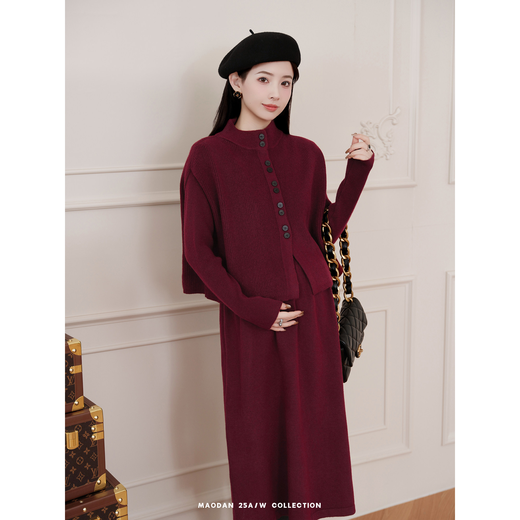 猫单【红茶小熊】【羊毛】娜娜的孕期穿搭孕妇装针织秋季半裙套装