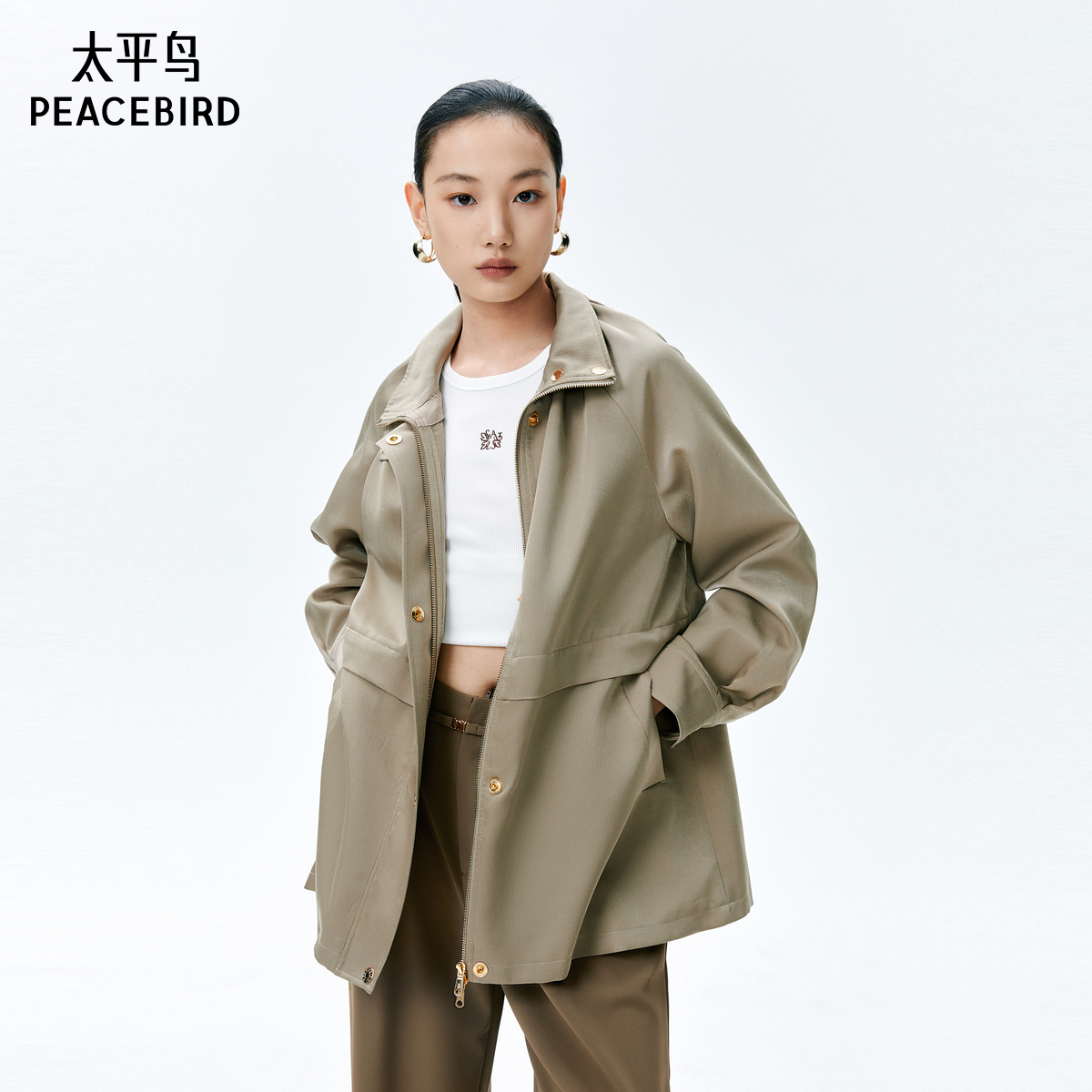 天猫太平鸟女装年春季款品质韩版时尚休闲收腰风衣A1BEE1452