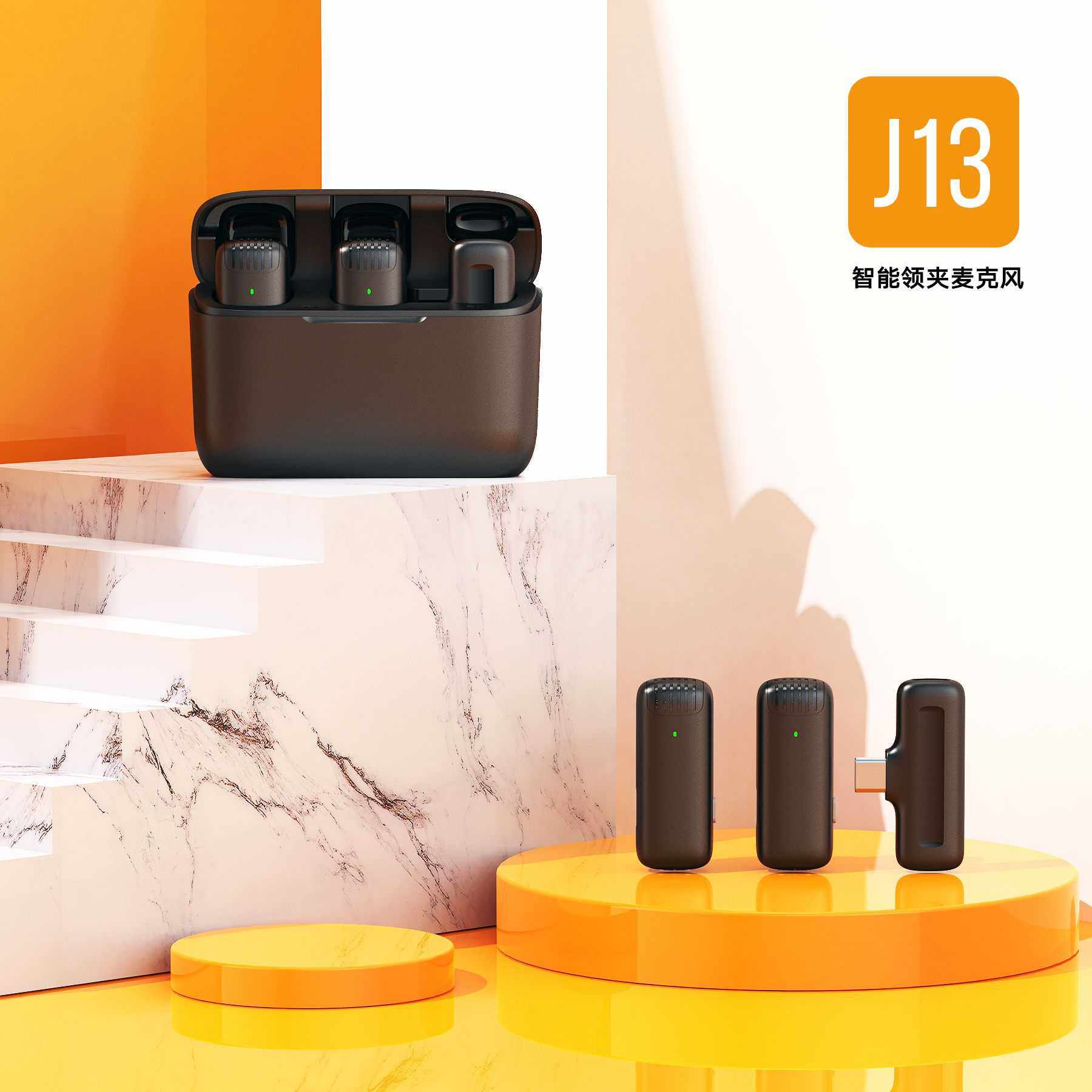 J13无线领夹麦克风一拖二设计,专为直播、采访、短视频创作等场景打造。配备双发射器与接收器,支持两人同时收音,轻松实现高效对话录制。内置高品质麦克风单元,具备智能降噪功能,有效过滤环境杂音,确保人声清晰纯净。采用2.4GHz无线传输技术,连接稳定,延迟低,有效距离可达50米。搭配便携充电仓,总续航长达24小时,支持边充边用,满足全天候拍摄需求。磁吸式收纳设计,轻便易携带,兼容手机、相机、电脑等多种设备,是内容创作者的得力助手。
