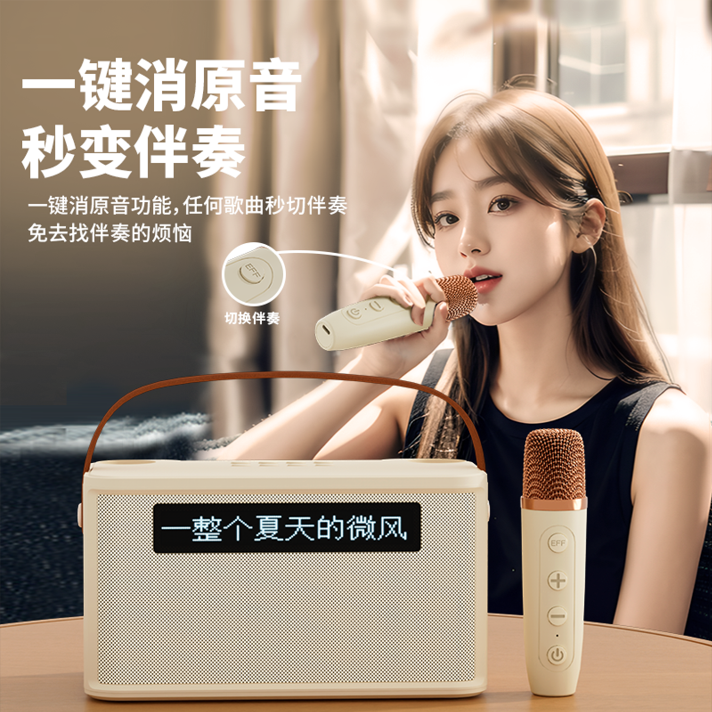 这款话筒音响一体麦克风,专为家庭K歌和儿童娱乐设计,集无线蓝牙、高清音响与智能显示于一体。支持蓝牙连接手机、平板或电视,轻松播放伴奏,内置高保真扬声器,音质清晰洪亮。独特的是,配备LED屏幕,可实时同步显示歌词字幕,让唱歌更轻松有趣。采用无线UHF传输技术,信号稳定,有效避免断连杂音。内置大容量电池,续航持久,适合家庭聚会、亲子互动或儿童才艺展示。操作简单,一键切换模式,老少皆宜。无论是居家娱乐还是户外派对,这款多功能K歌麦克风都能带来专业级KTV体验,让歌声点亮欢乐时光。