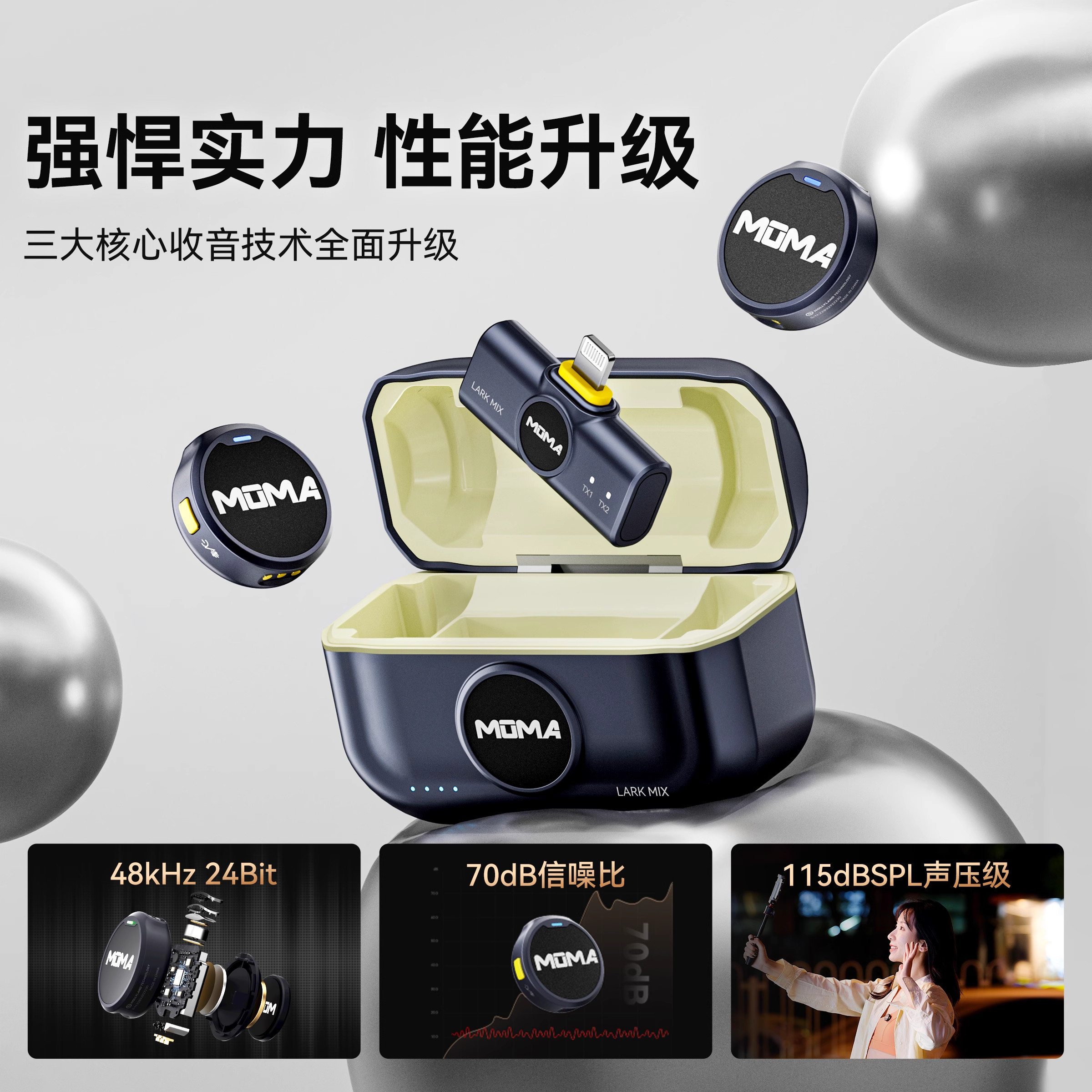 【国补15%】猛玛LARKMIX纽扣无线麦克风,专为直播、短视频创作打造。采用夹领式设计,轻巧便携,佩戴稳固不脱落。搭载专业级收音芯片与智能降噪技术,有效过滤环境杂音,人声清晰纯净,还原真实音质。支持2.4GHz无线传输,连接稳定低延迟,有效距离可达50米,满足室内外多种场景使用。内置高容量电池,续航长达8小时,支持边充边用。兼容手机、相机、电脑等多种设备,即插即用,操作简便。现享国家补贴15%,性价比极高,是内容创作者、主播、讲师等用户的理想收音之选。猛犸品质,值得信赖。