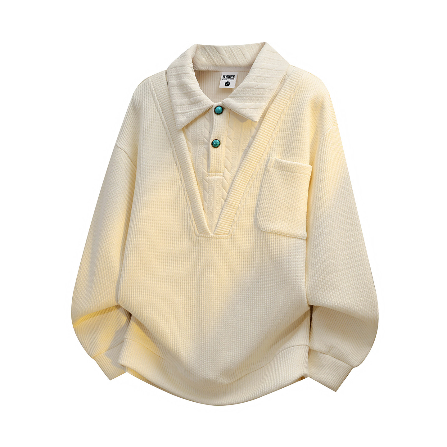 天潮牌休闲长袖T恤套头上衣男2025秋冬加绒加厚翻领Polo衫贴标卫衣