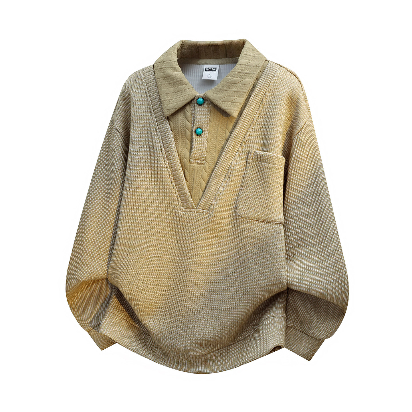 淘宝拉夏贝尔假两件polo衫卫衣加绒冬季男新款衬衫拼接设计感上衣大码