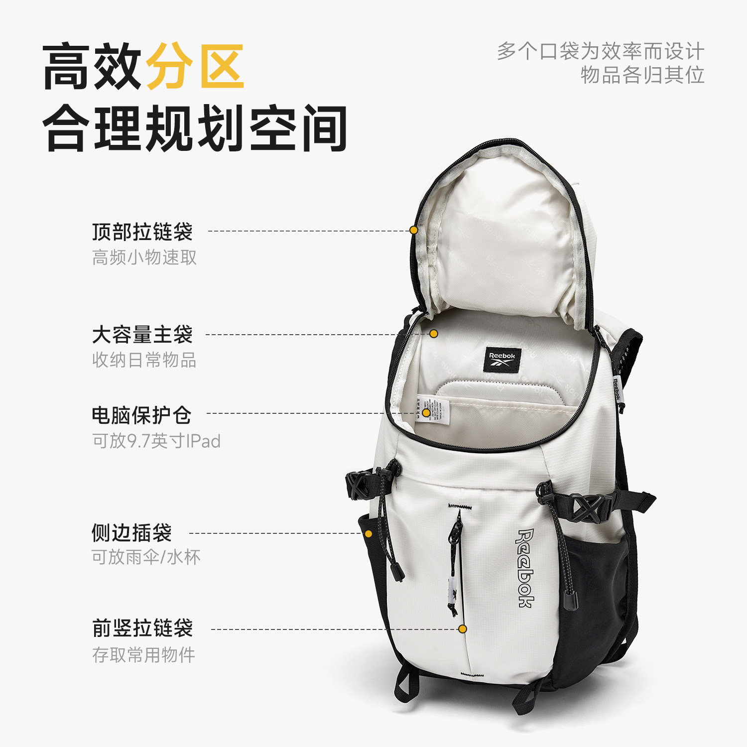 天猫Reebok锐步轻量化双肩包男女徒步爬山背包休闲户外运动登山旅行包