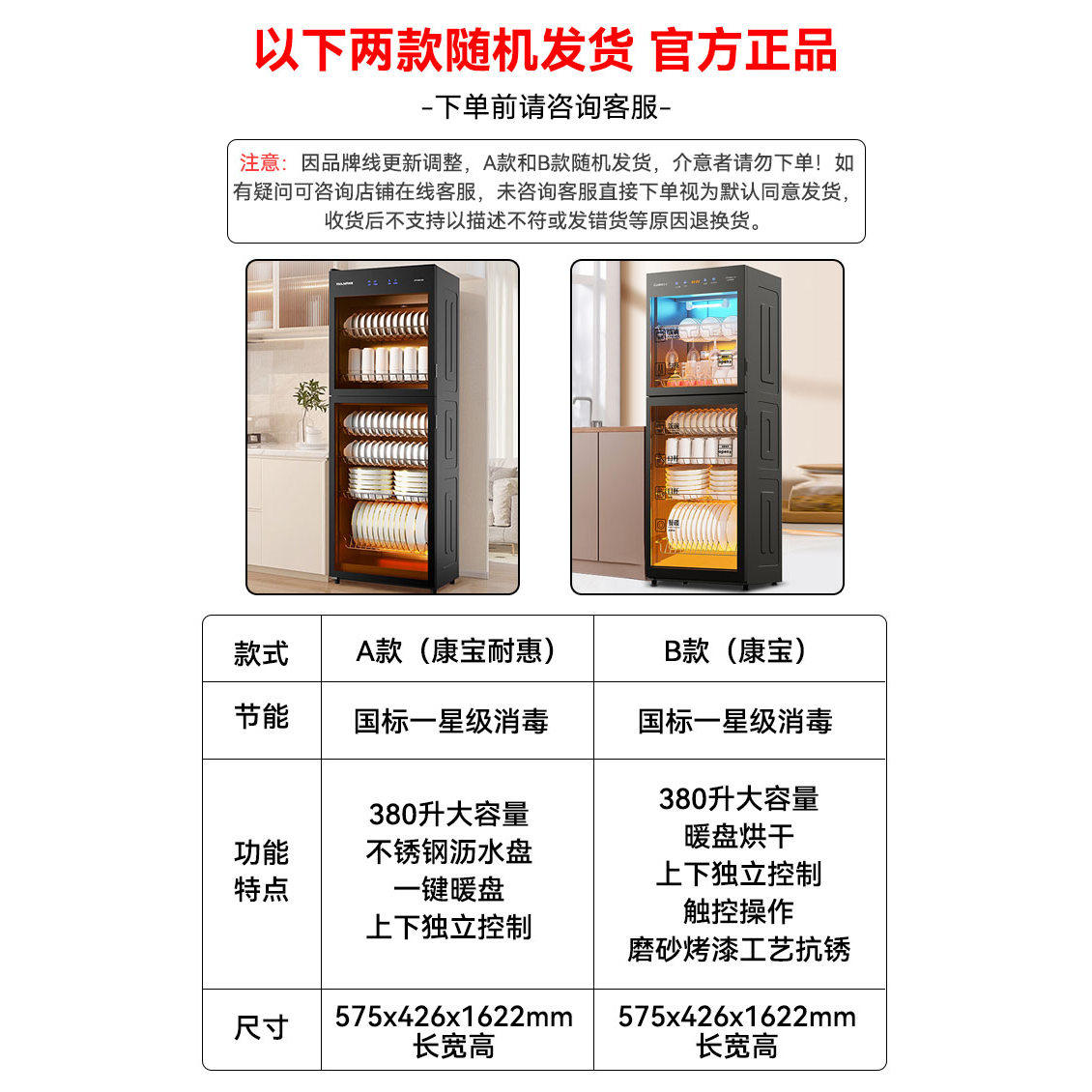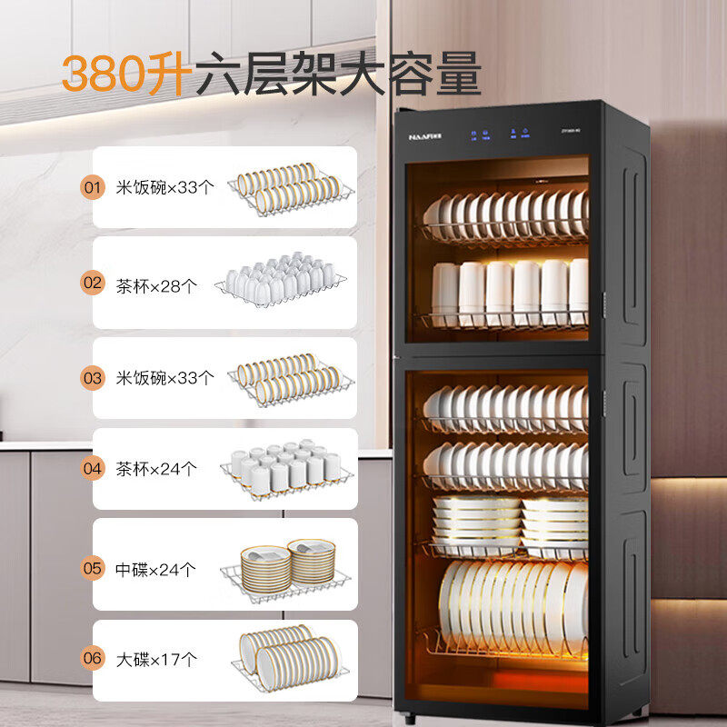 康宝耐惠立式消毒柜,380升大容量设计,专为酒店、餐厅等商用场景打造。采用国标二星级消毒标准,高效杀灭大肠杆菌、金黄色葡萄球菌等常见病菌,确保餐具卫生安全。上层臭氧+紫外线双重消毒,下层高温烘干,全面呵护碗筷、餐具。不锈钢内胆耐腐蚀、易清洁,层架可调节,适配不同餐具摆放需求。智能触控面板操作简便,配备童锁和过热保护,使用更安心。大容量存储满足高峰时段需求,节能高效,是商用厨房的理想之选,为餐饮卫生保驾护航。
