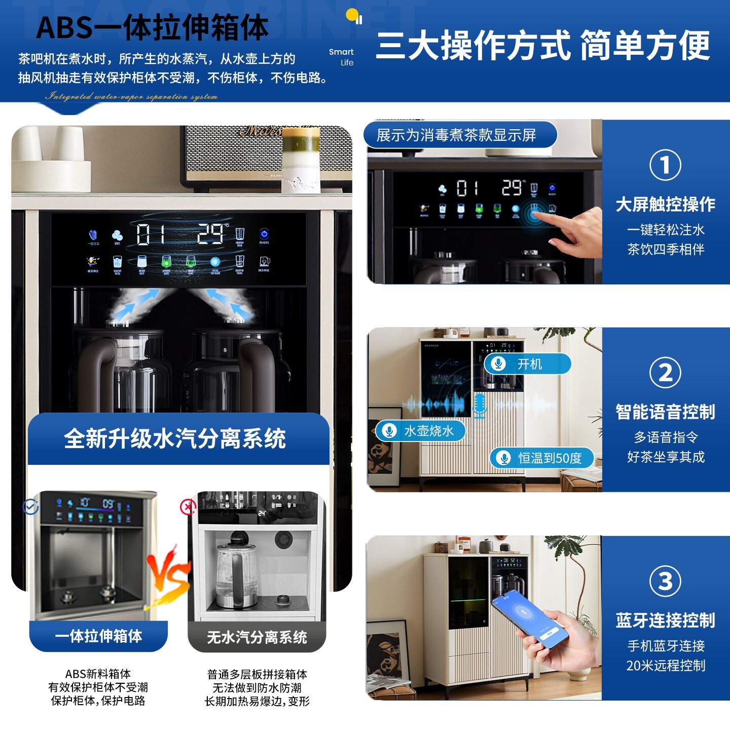 2024年全新推出的全自动家用智能茶吧机柜子一体柜,集水机、消毒、储物与餐边柜功能于一体,完美融合实用与美学。采用奶油风设计,温润柔和的配色搭配简约线条,轻松融入现代家居空间。内置智能触控系统,支持一键烧水、多档温控、自动保温及紫外线消毒功能,保障饮水安全卫生。大容量隐藏式水箱与多层储物格设计,满足茶叶、杯具、零食等收纳需求。静音运行,操作便捷,既是高效饮水站,也是提升生活品质的家居亮点,为现代家庭打造健康、智能、优雅的饮茶新体验。