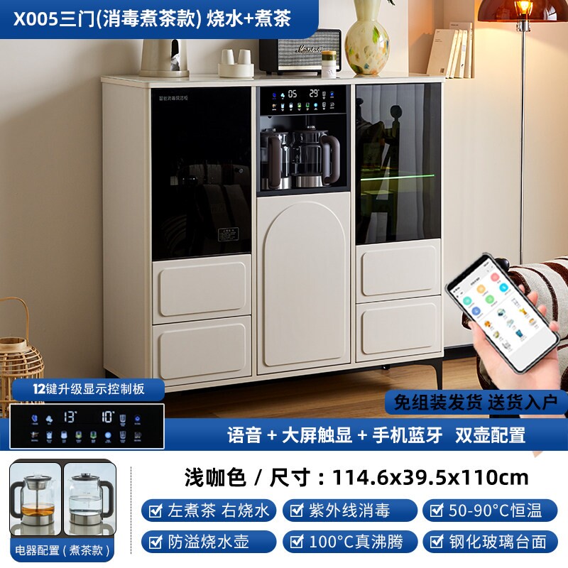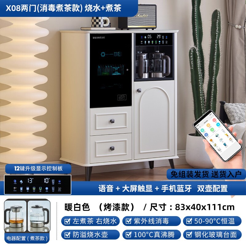 淘宝全自动家用智能茶吧机柜子一体柜水机消毒餐边柜奶油风2024新款饮