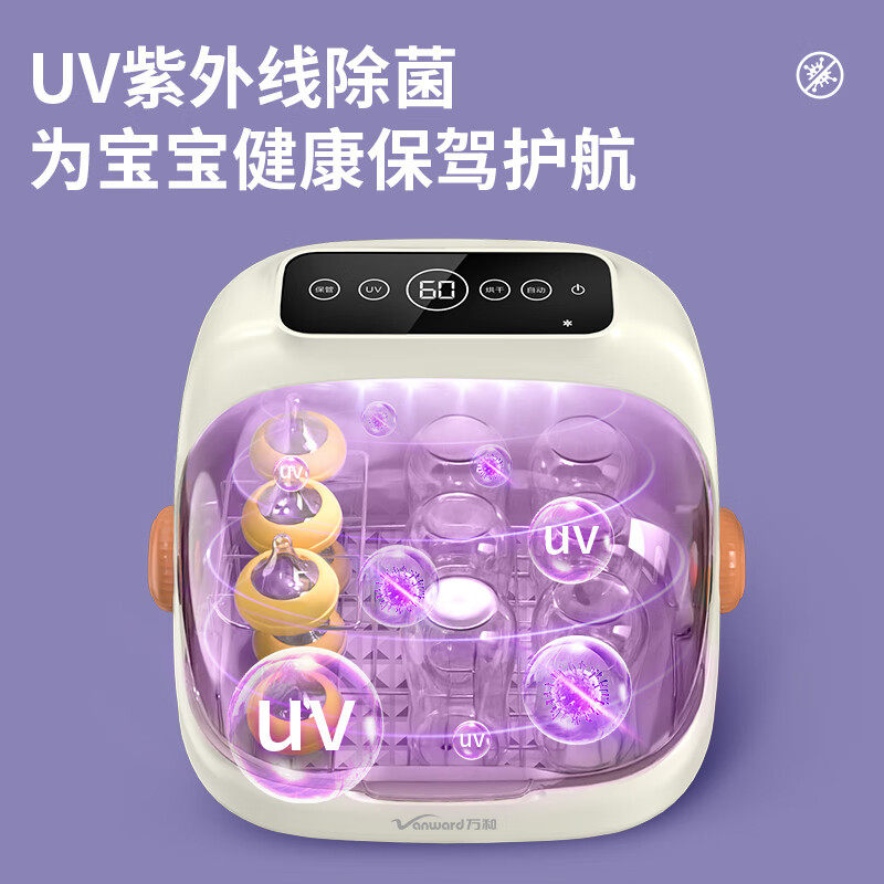 万和奶瓶消毒器是一款集紫外线消毒与烘干功能于一体的家用婴儿用品,专为新手爸妈设计。采用高效UV紫外线杀菌技术,360°全方位消毒,有效杀灭99.9%的细菌与病毒,无需加水,免沥水操作更便捷。内置PTC恒温烘干系统,快速风干奶瓶、奶嘴等用品,避免二次污染。小巧机身节省空间,适合家庭、旅行使用。透明视窗设计,可随时观察内部状态,安全锁功能保障使用安全。适用于各种材质奶瓶及婴儿餐具,是宝宝健康喂养的贴心助手,让消毒更彻底、更省心。