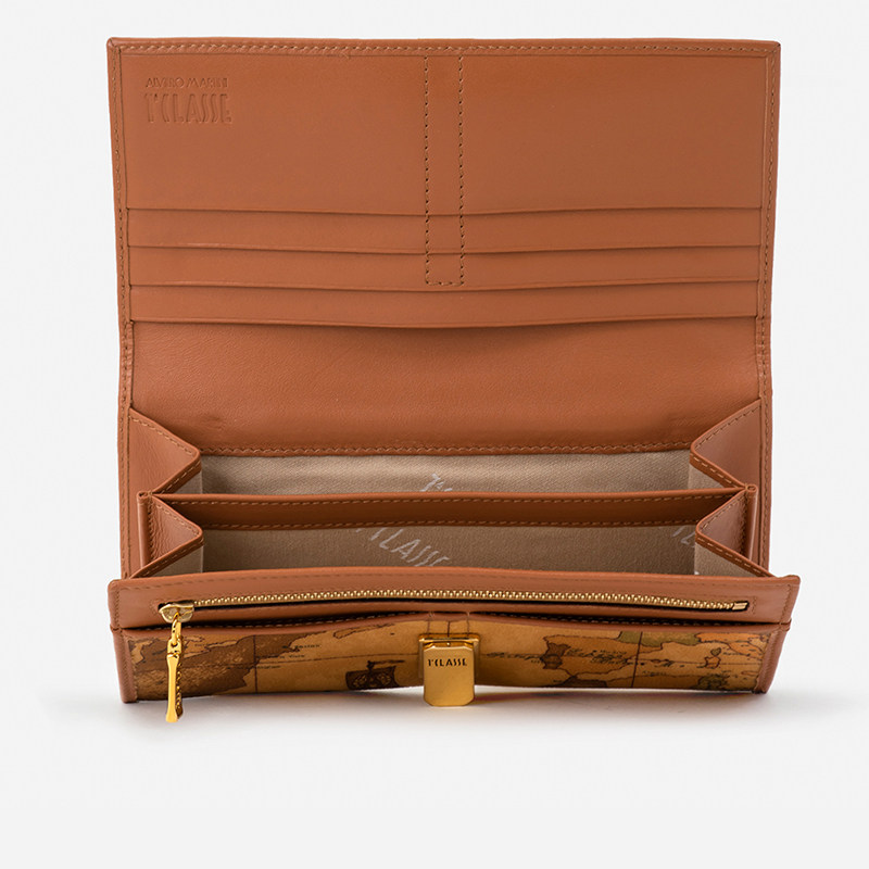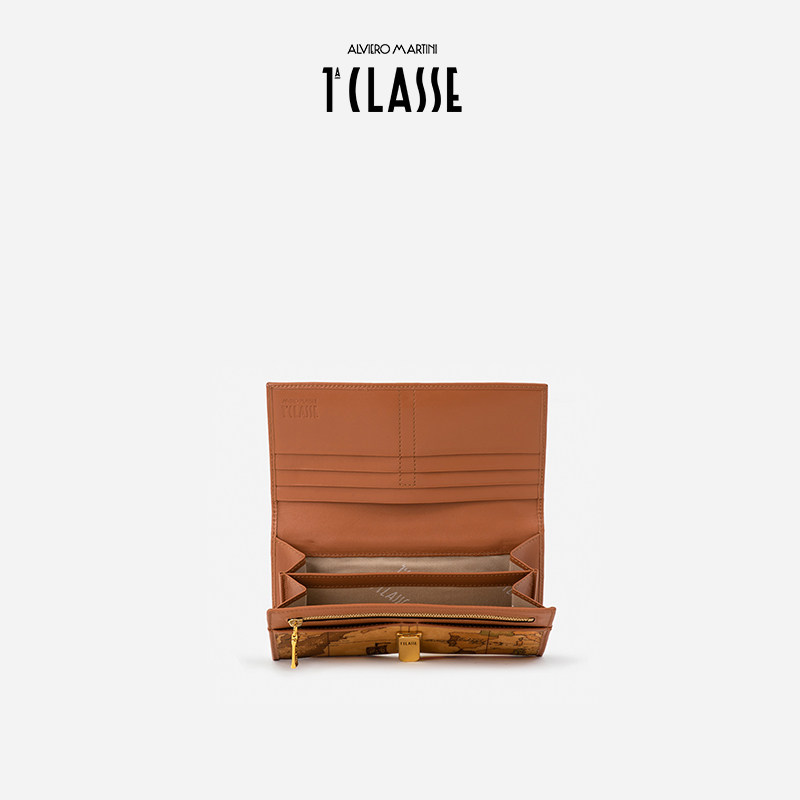 ALVIERO MARTINI 马天尼地图包 GeoClassic 大号钱包牛皮手拿包,融合经典复古与现代实用主义。采用优质牛皮材质,表面饰以品牌标志性地图印花,彰显独特旅行情怀与意式优雅。包型挺括大方,内部结构丰富,设有多个卡位、票据夹层及宽敞主袋,轻松收纳现金、卡片与手机。磁扣开合设计便捷安全,既可作手拿包出席正式场合,亦可作为大号钱包放入手提包中。GeoClassic 系列延续马天尼品牌百年工艺精髓,兼顾美学与功能性,是追求品质与风格的都市人士的理想之选。