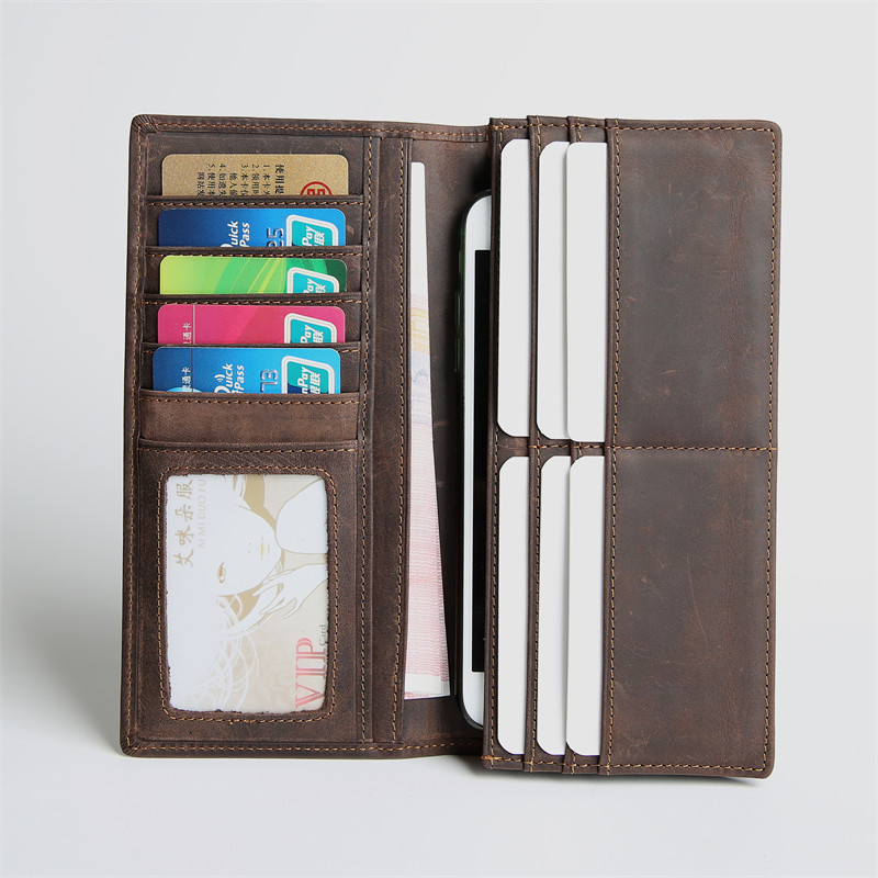 淘宝复古男款疯马头层牛皮长款钱包男士真皮多卡位大容量钱夹青年皮夹