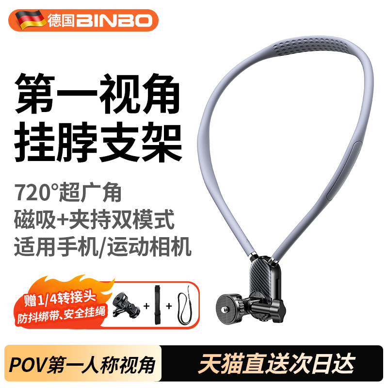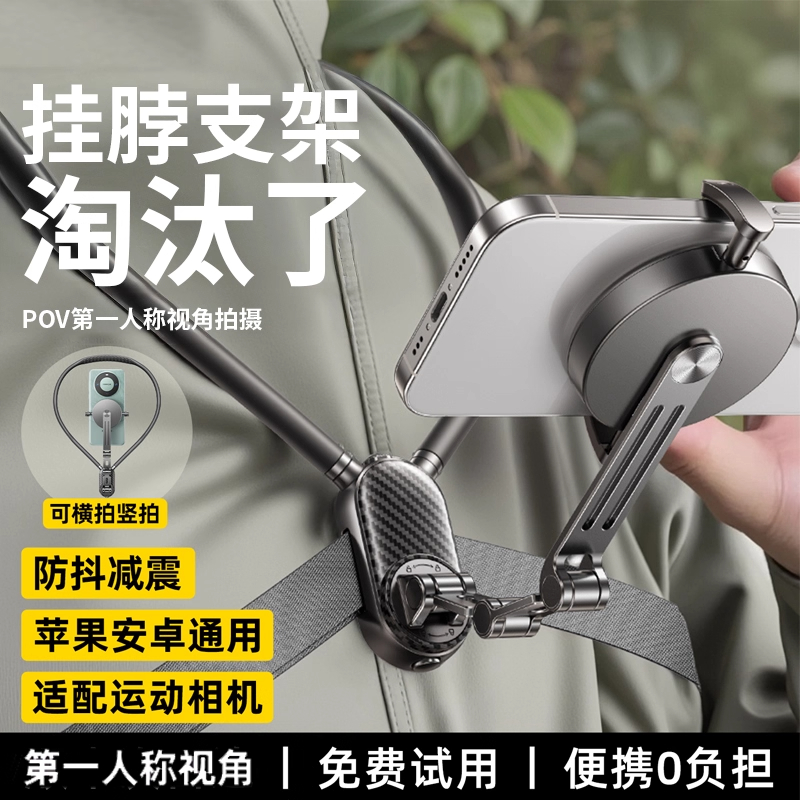 天猫挂脖手机支架第一人称视角拍摄设备胸前固定适配大疆GoPro穿戴式防抖直播Vlog骑行磁吸运动相机pocket3神器