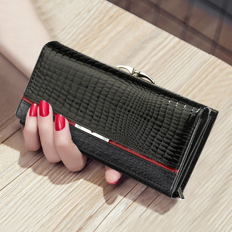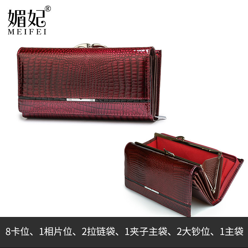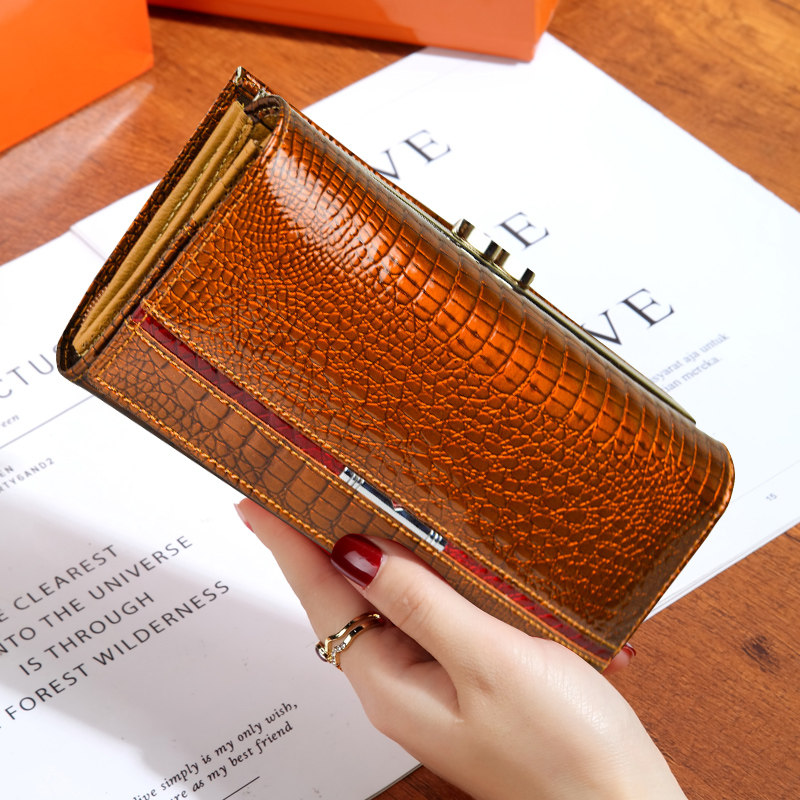 天猫2025新款真皮夹子拉链手包高级感亮皮鳄鱼纹大容量长款钱包放手机