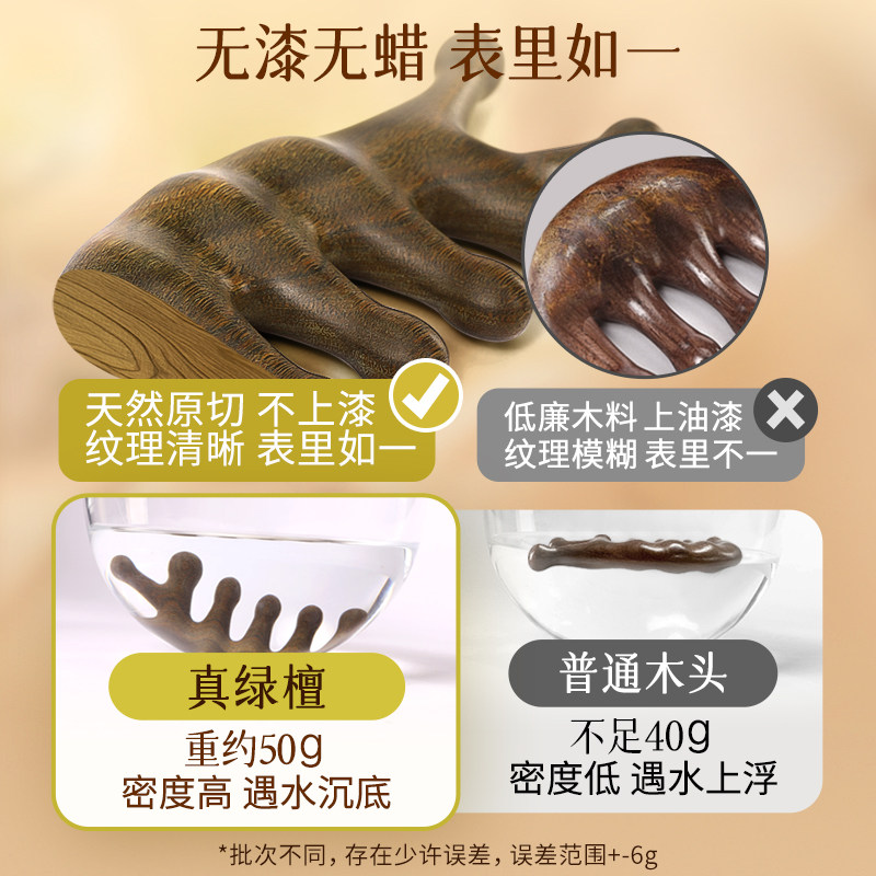 天猫天然绿檀木按摩梳子经络梳头疗头皮头部五指五爪七齿防疏通脱发器