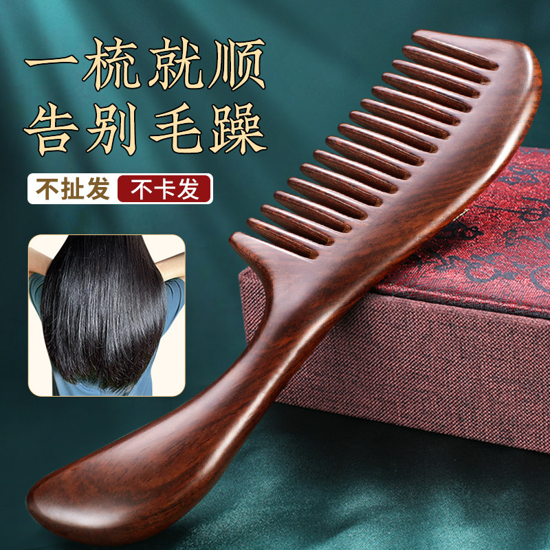 淘天然黑檀木梳子大齿宽齿卷发梳家用养发梳女士长发养发男按摩梳子