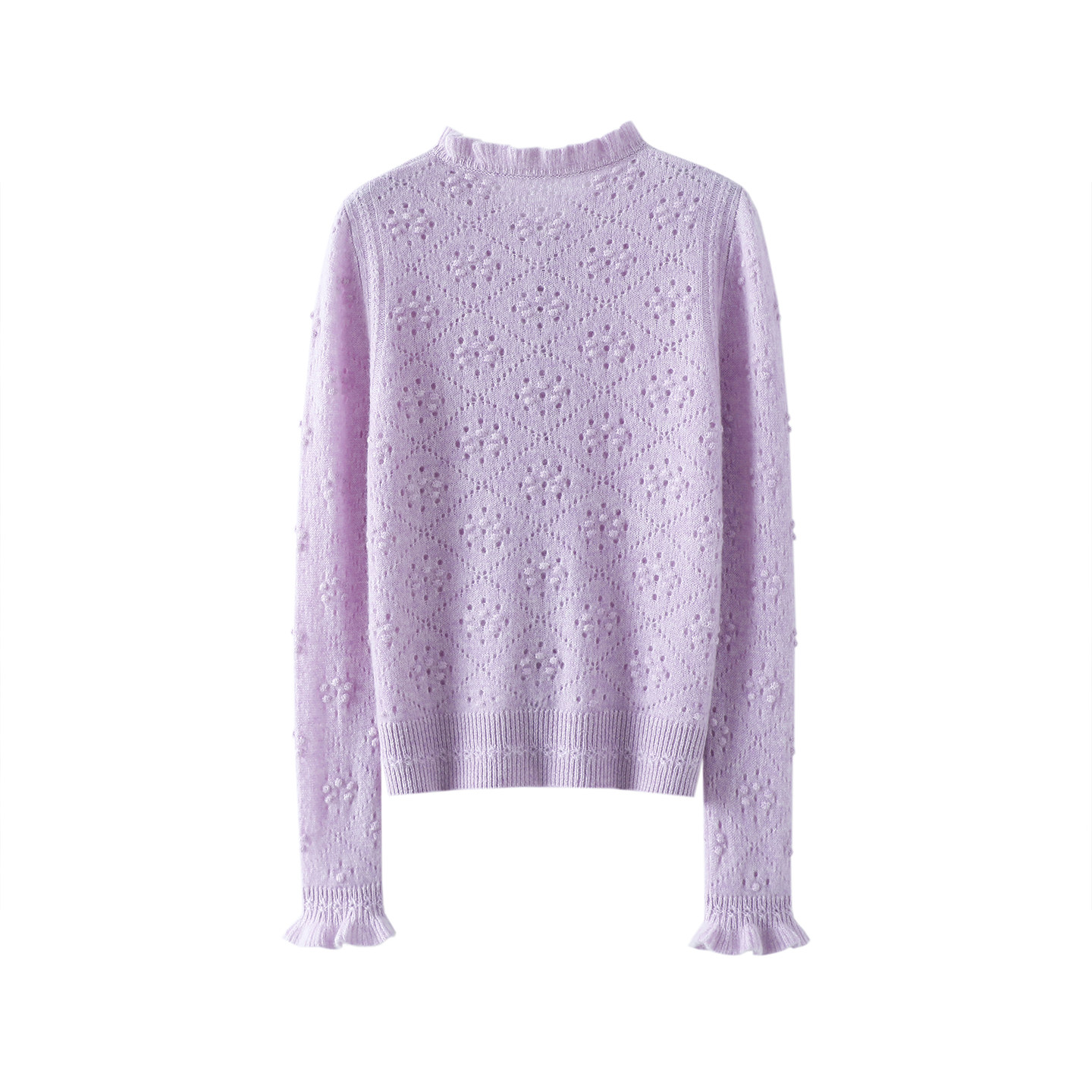 东黎山羊绒 你本珍贵-清荷 女士V领灯笼袖镂空绞花针织套衫20S53