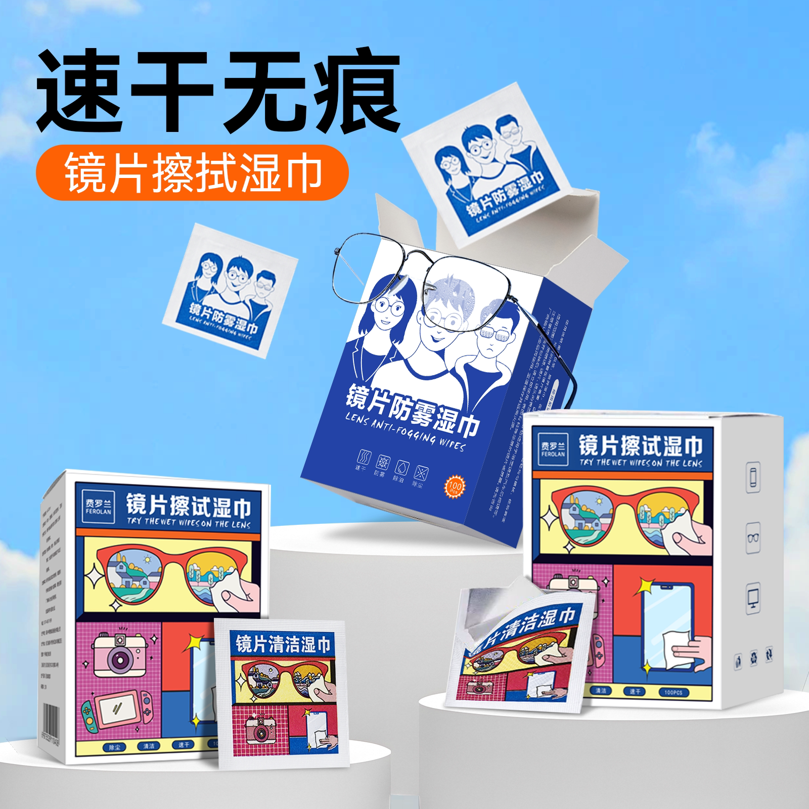 淘宝眼镜专用清洁湿巾防起雾不伤镜片一次性擦拭手机镜头擦拭纸巾镜布