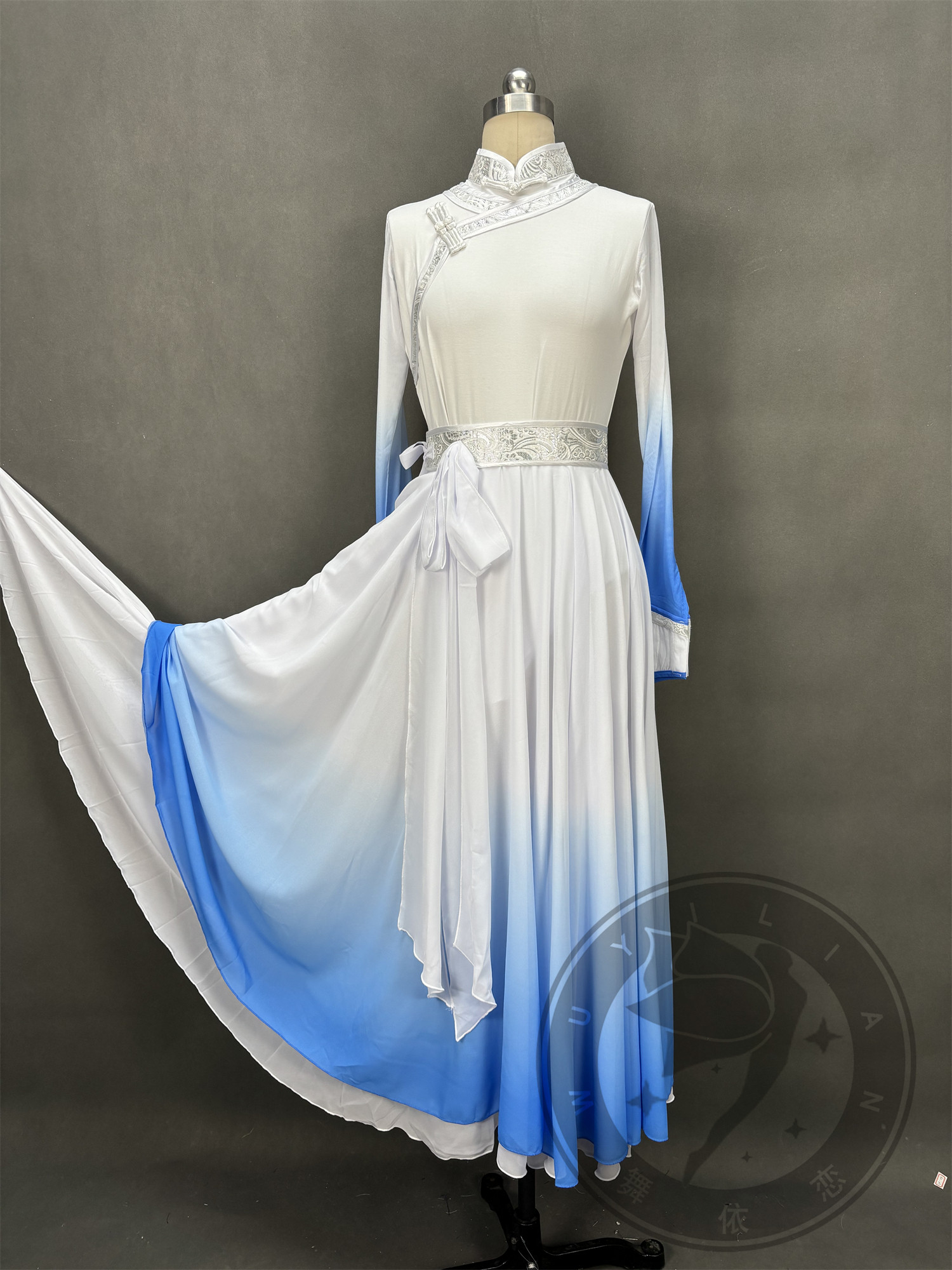 淘蒙古蓝色舞蹈大摆裙学生表演舞蹈服装艺考定制新款舞台演出套装裙