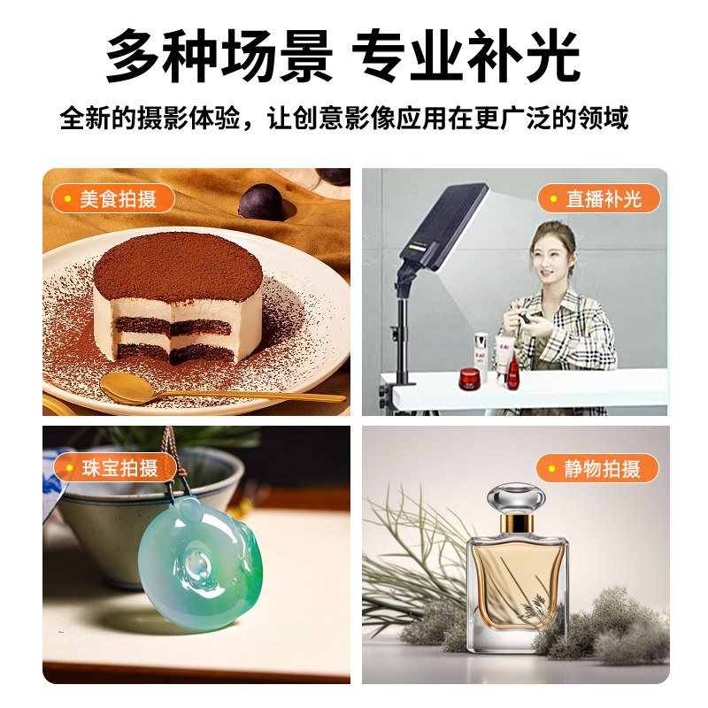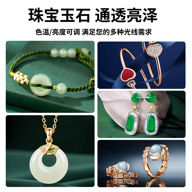 专用直播补光灯是专为珠宝、翡翠、玉石等首饰及文玩古董的直播拍摄而设计的照明设备。采用LED光源,具有聚光射灯功能,为桌面、室内拍摄提供均匀光线,展现商品的细节和质感。同时,该补光灯适用于美食摄影,能营造出吸引人的视觉效果。其悬臂设计灵活多变,方便调整光线角度和位置,为主播带来便捷的使用体验。高效稳定,满足专业摄影需求。这款专用直播补光灯是您进行直播拍摄的必备装备。