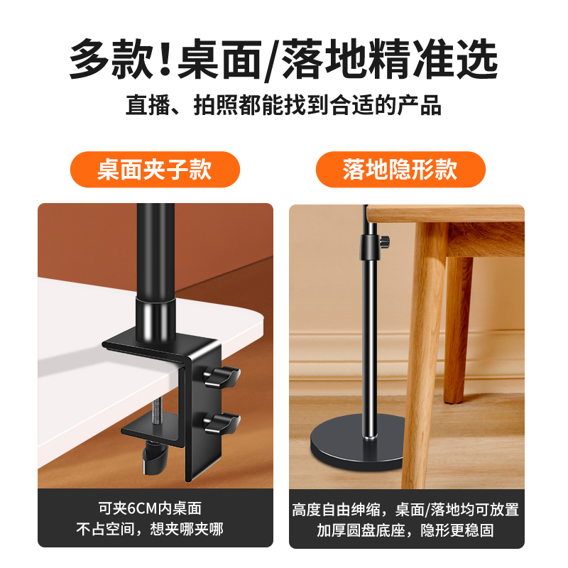 天2025桌面俯拍手机支架直播带补光灯新款拍摄专用美颜灯全套设备拍照书法美食珠宝多功能录拍视频架子悬臂夹式