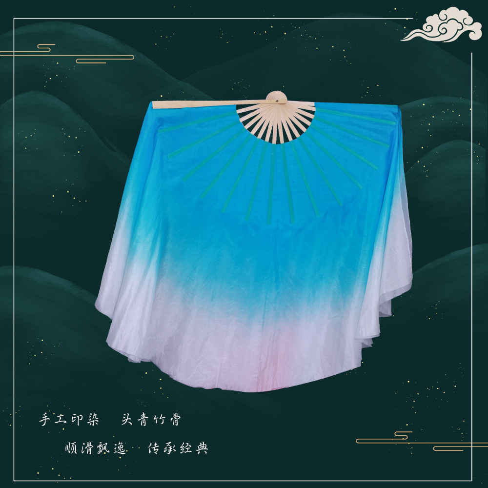 淘宝蓝色古典舞舞蹈扇子跳舞扇双面真丝蓝色渐变胶州秧歌扇古典舞扇子