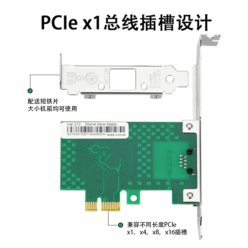 天猫乐扩PCIE千兆单口网卡英特尔I210芯服务器台式机PXE支持X1