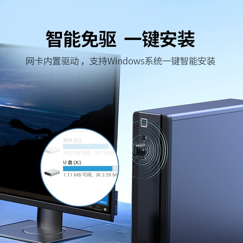 绿联USB无线网卡是一款专为台式机、笔记本及苹果设备设计的迷你外置WiFi接收器,支持5G双频(2.4GHz & 5GHz),提供高达1200Mbps的千兆级高速传输,有效减少网络延迟,畅享高清视频、在线游戏与大文件下载。采用免驱动设计,即插即用,兼容Windows、macOS及主流操作系统,无需繁琐安装。小巧便携,信号稳定,内置高性能天线,增强穿墙能力,适合家庭、办公等多种场景。无论是老旧电脑升级网络,还是提升苹果设备无线体验,绿联USB无线网卡都能轻松胜任,是打造高效无线网络的理想选择。