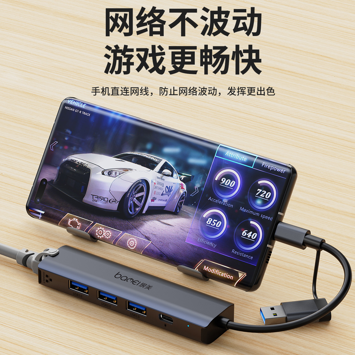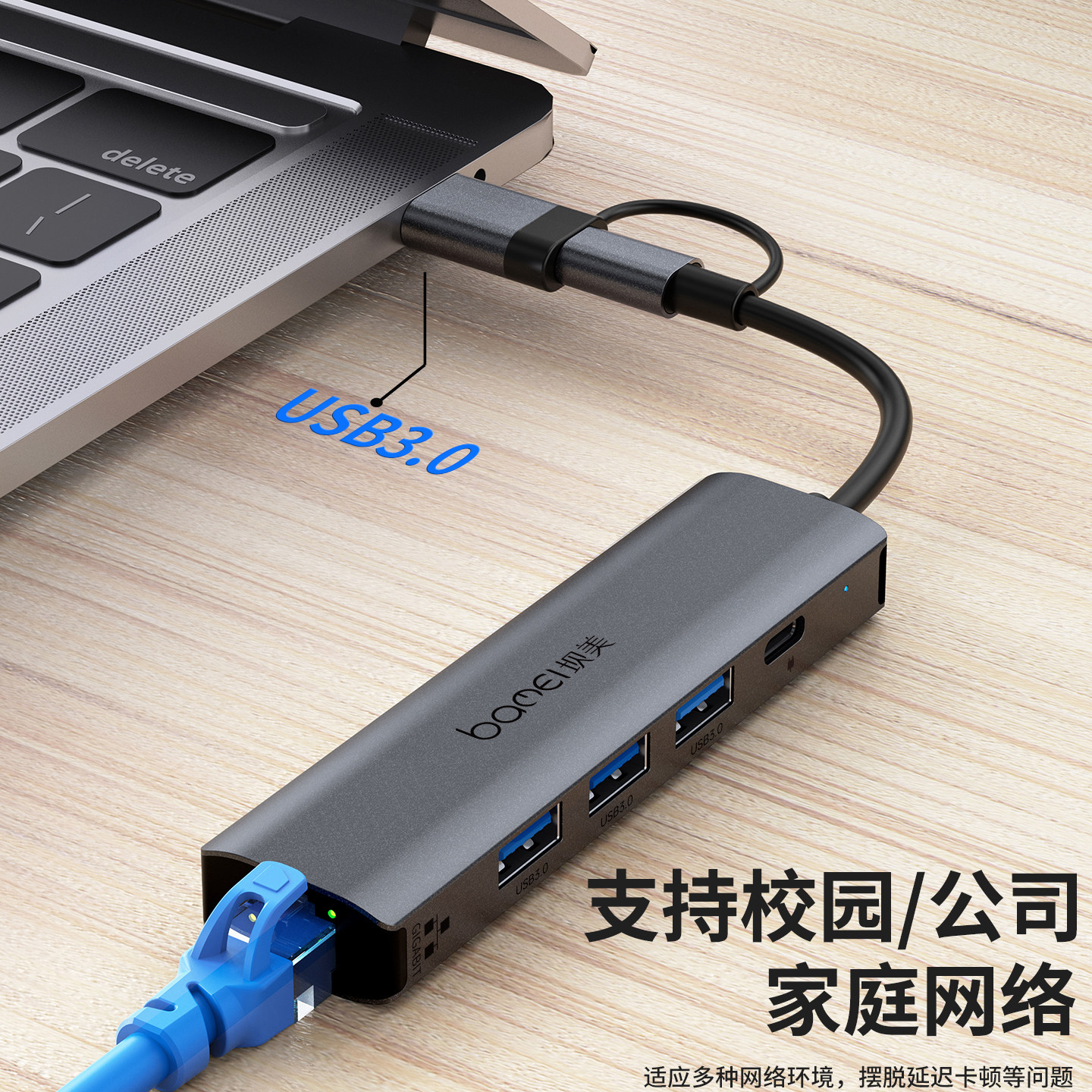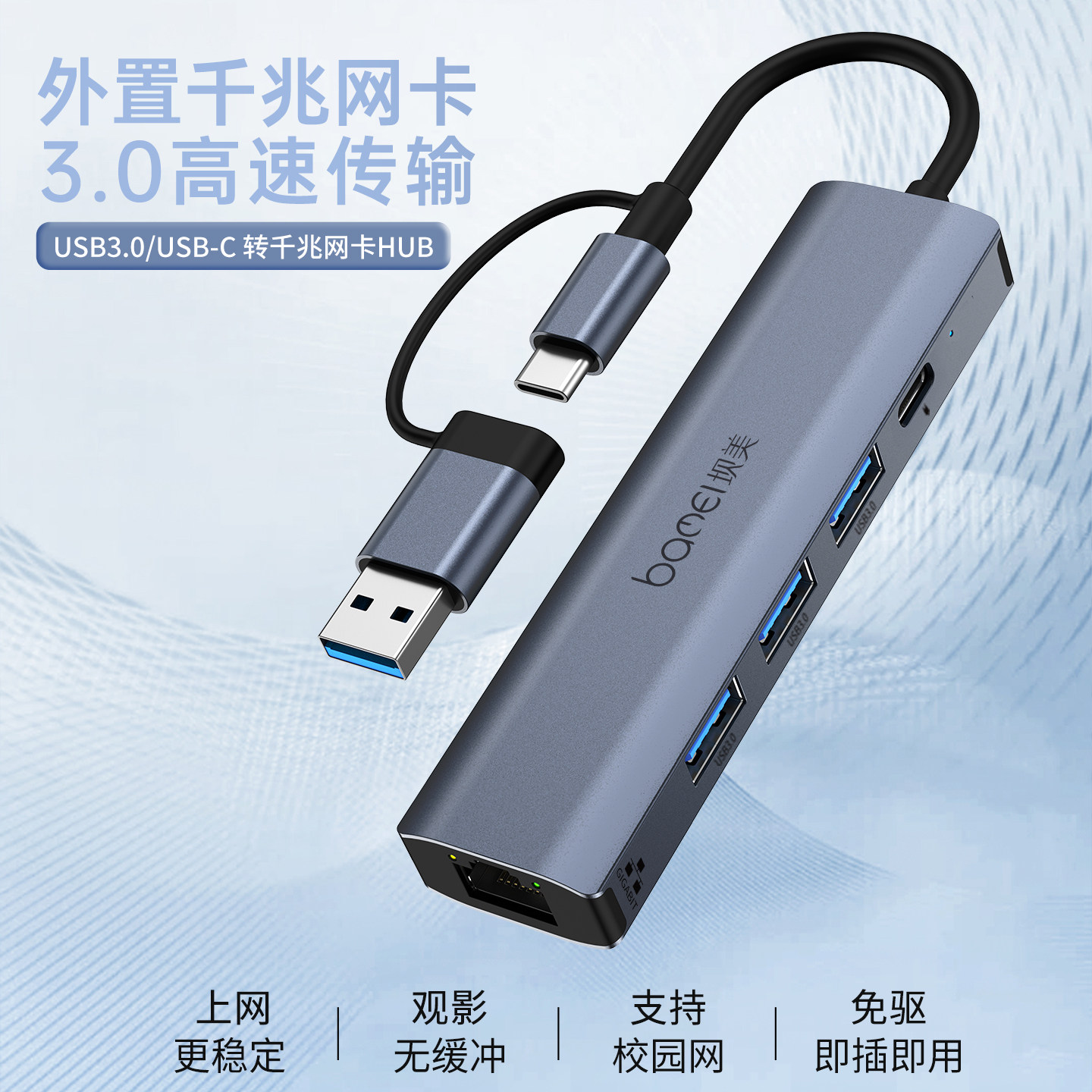 淘宝坝美双头USB千兆有线网卡3.0hub笔记本电脑平板手机PC集线器网口