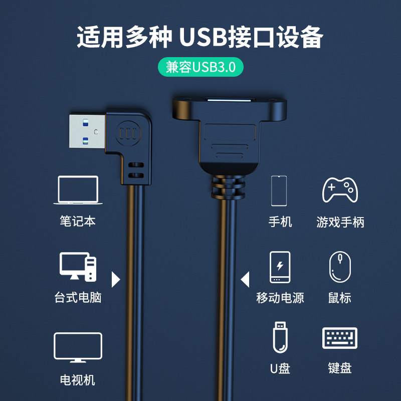 天猫俊达利USB3.0延长线带耳朵1/2米USB公对母3.0数据线螺丝孔固定机箱柜挡板线数据连接电脑优U盘网卡鼠标键盘线