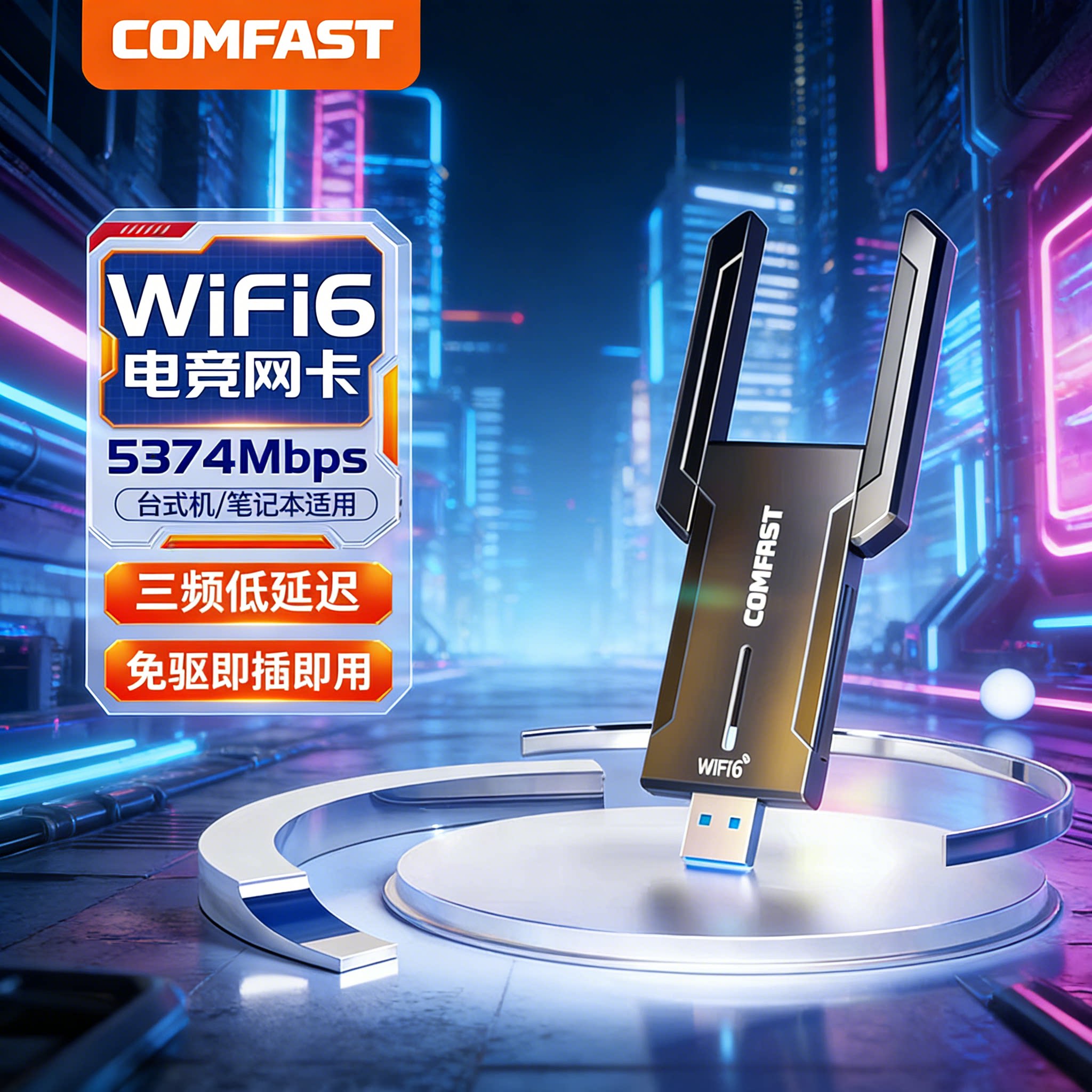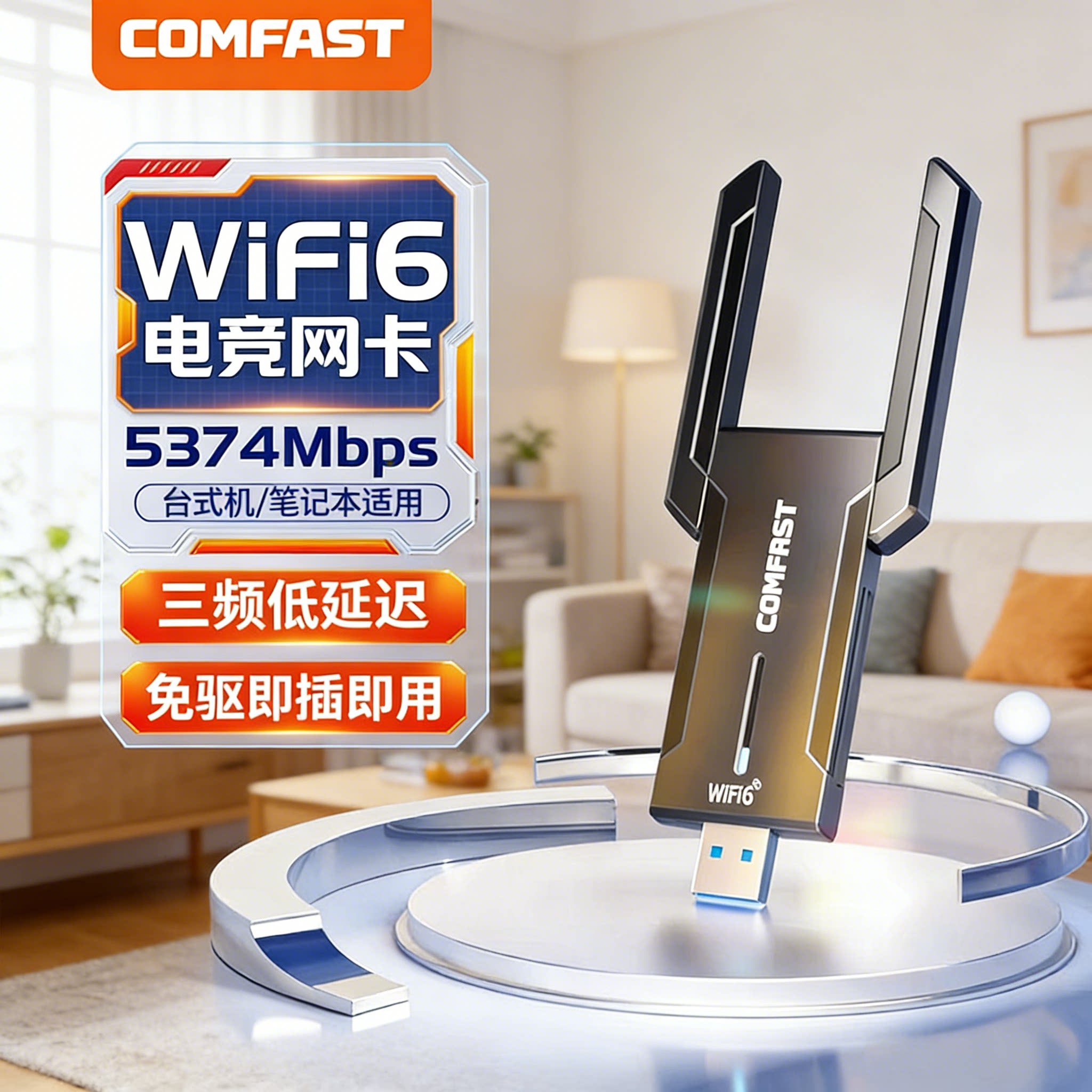 天猫【AX5400三频】COMFAST CF-972AX无线网卡台式机WiFi6千兆5g双频网络信号接收器笔记本电脑外置usb无线网卡