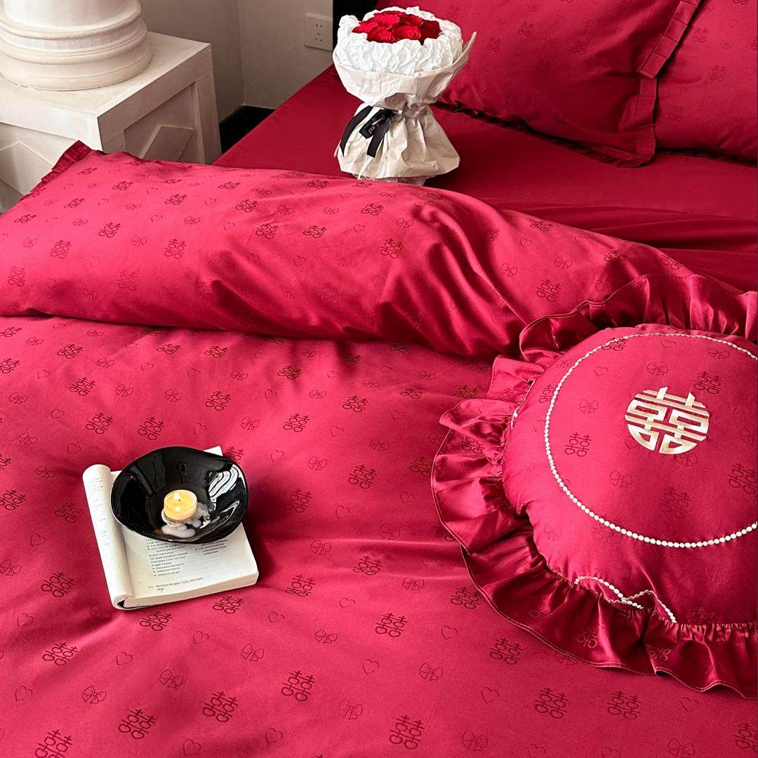 淘轻奢高级感全棉婚庆四件套纯棉结婚提花被套红色床单婚房陪嫁床品
