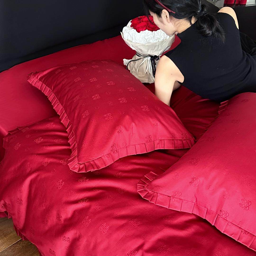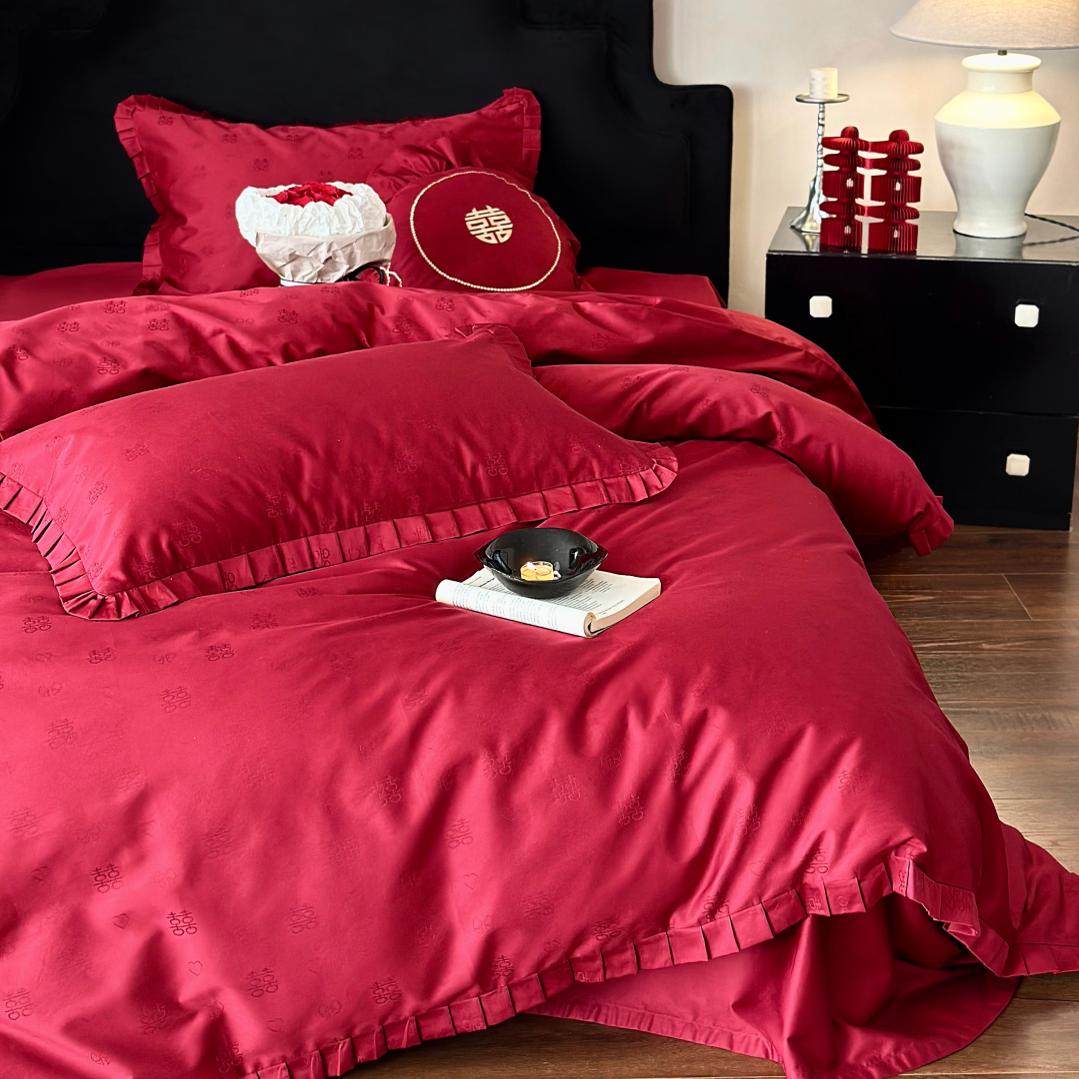 轻奢高级感全棉婚庆四件套纯棉结婚提花被套红色床单婚房陪嫁床品
