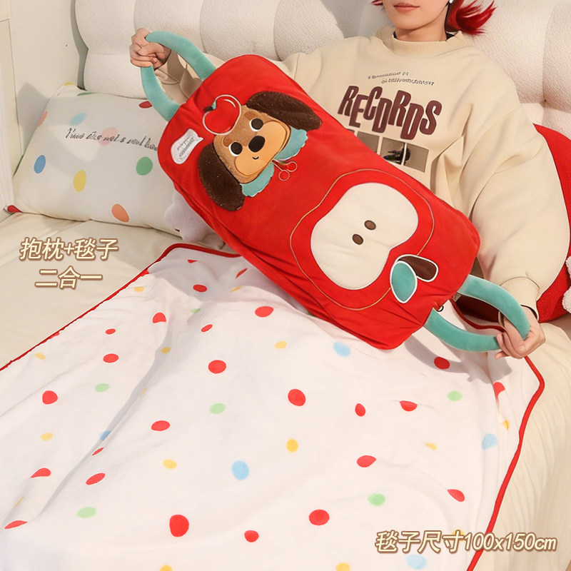 御尚居小狗大豆纤维抱枕被子两用加厚汽车载办公室午睡毯子二合一