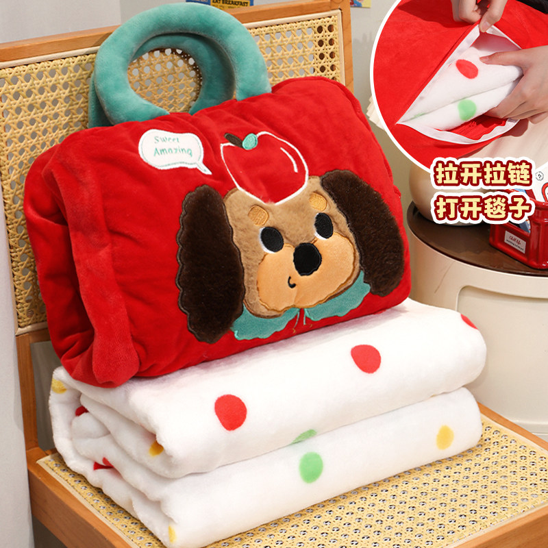 天御尚居小狗大豆纤维抱枕被子两用加厚汽车载办公室午睡毯子二合一