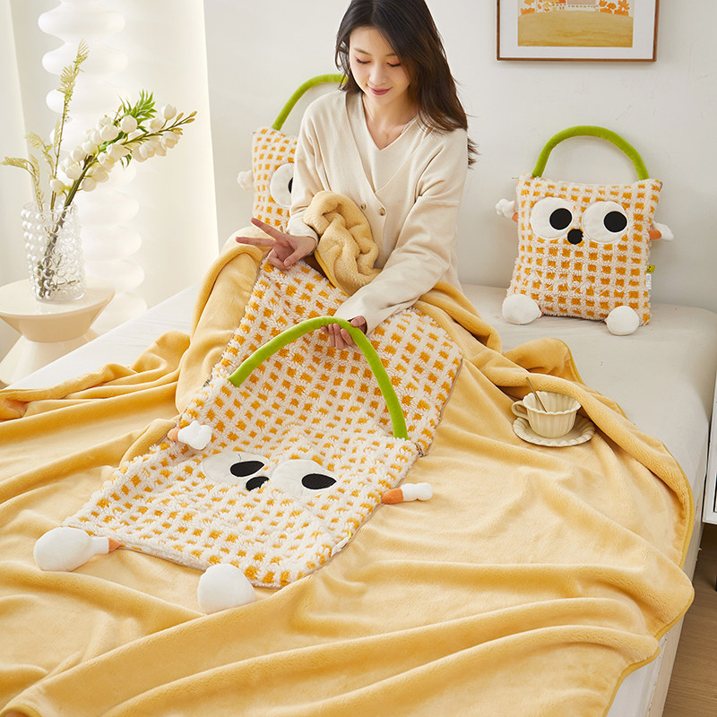 加厚冬季珊瑚绒毯子二合一午休抱枕被子两用折叠汽车载用枕头定制