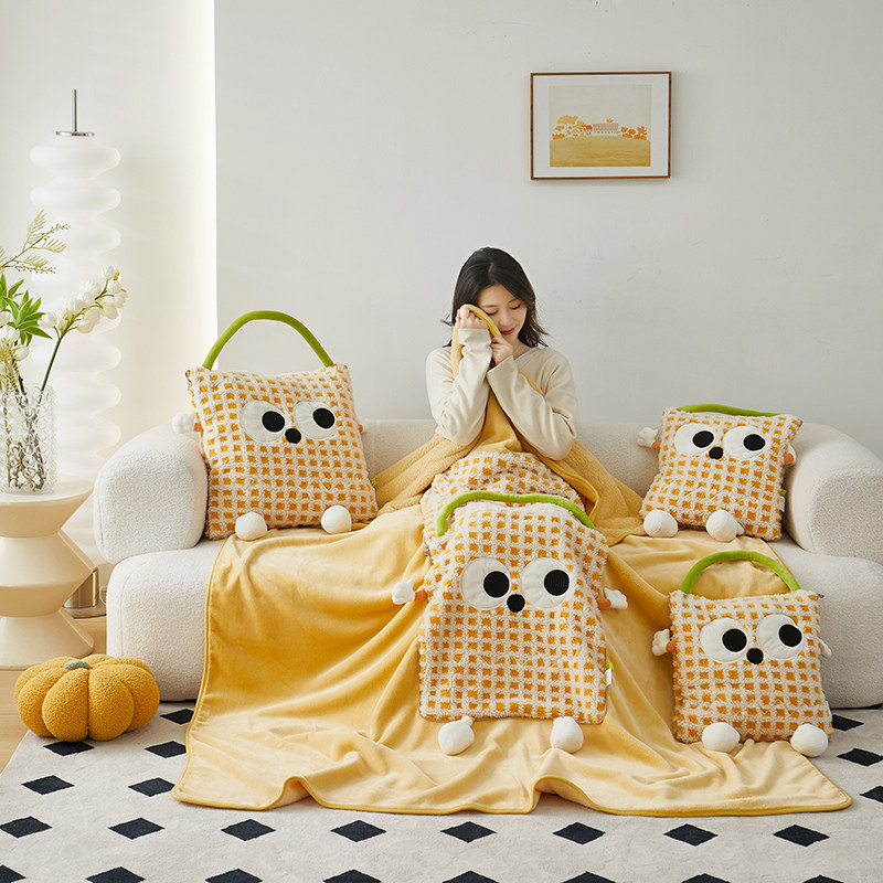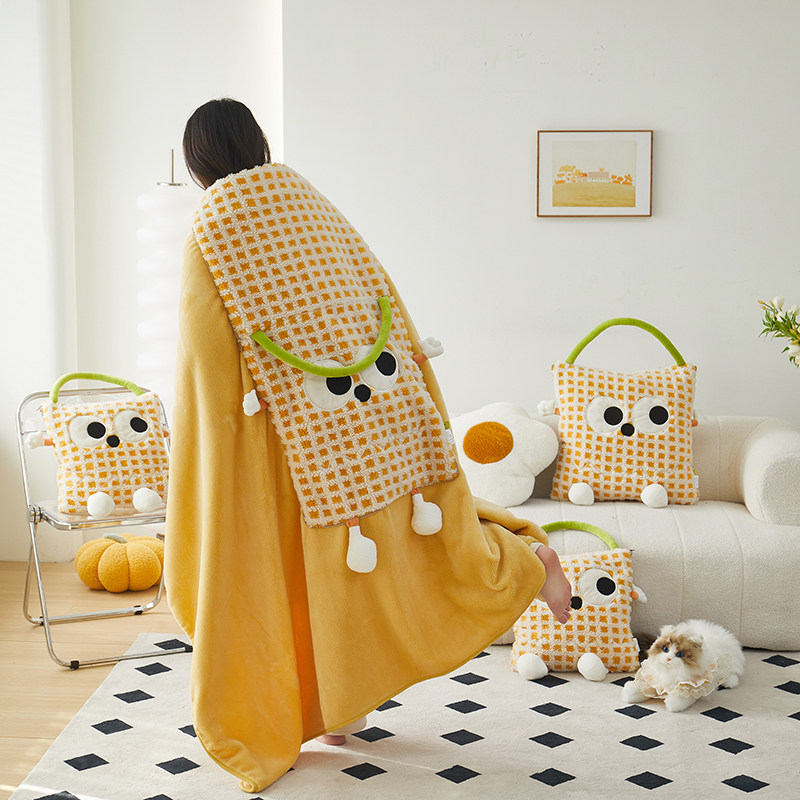 A类加厚牛奶绒两用抱枕被子卡通沙发汽车靠垫办公室午睡折叠毛毯