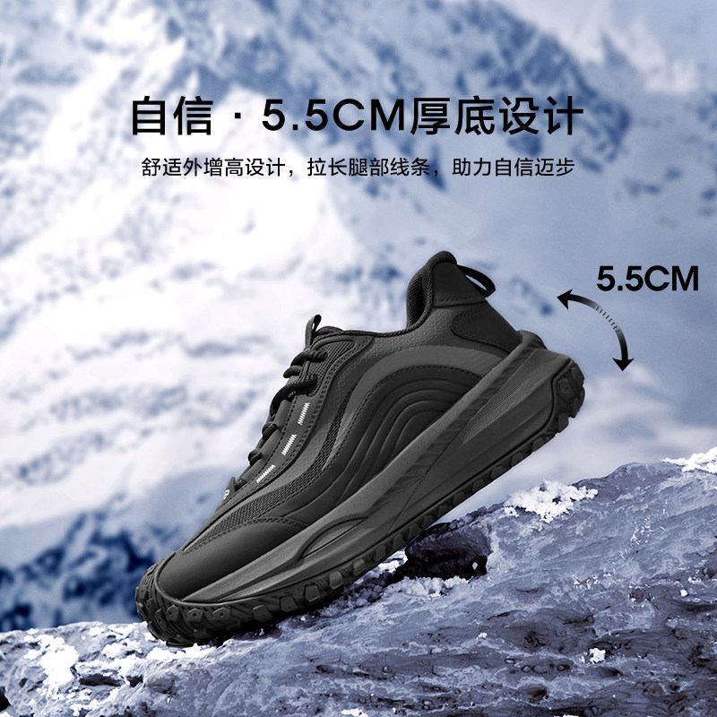 森马男鞋2025新款冬季网面潮鞋厚底男士增高休闲跑步运动老爹鞋W