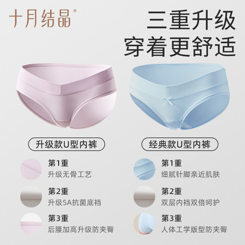 天猫十月结晶孕妇内裤托腹怀孕期低腰底档大码无痕产妇内裤头u型4条组