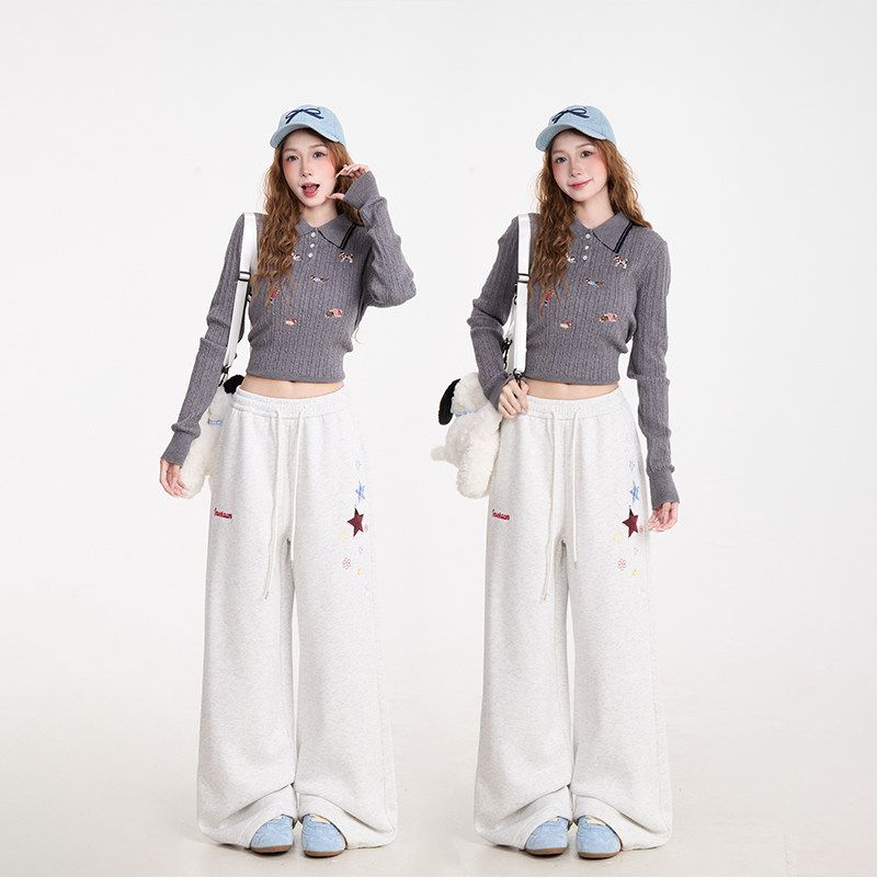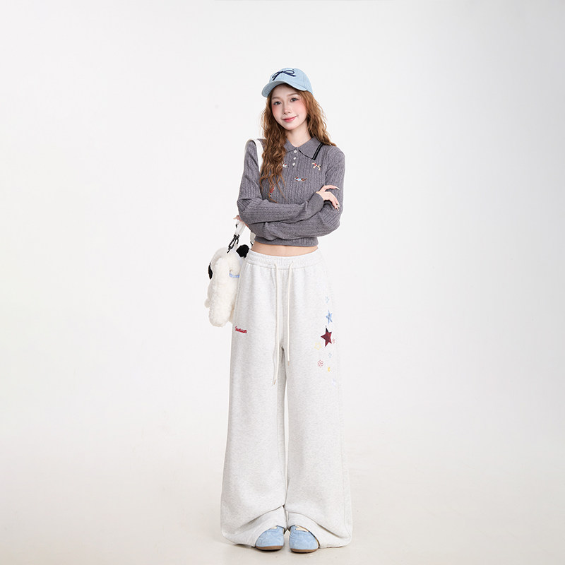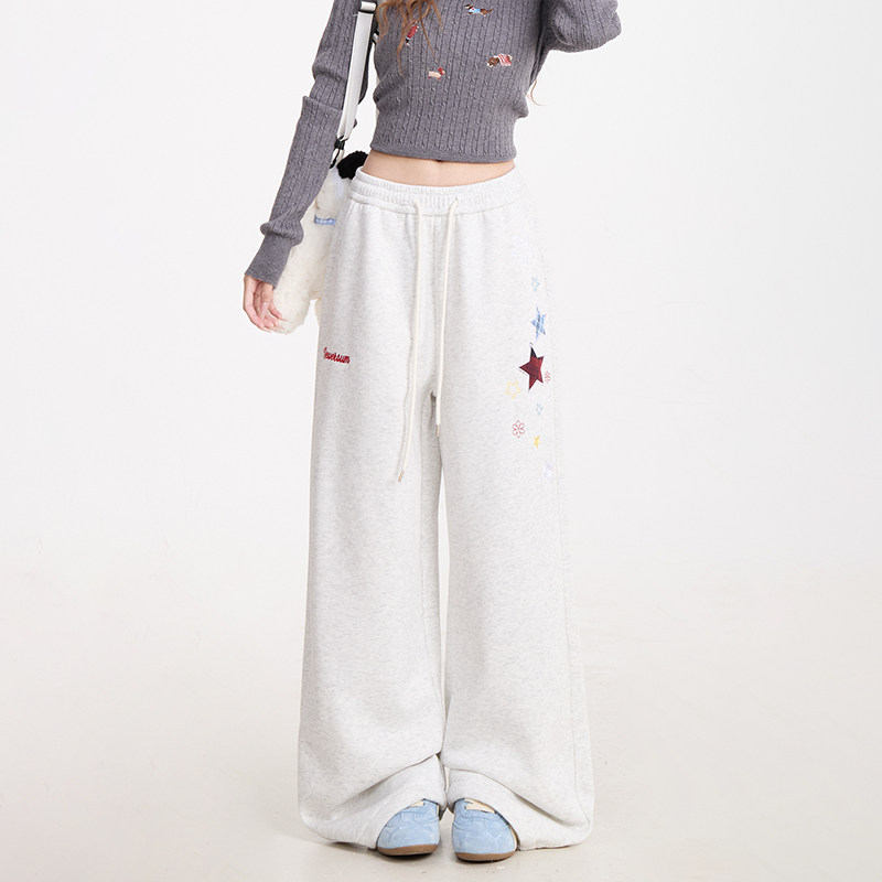 淘宝NERESUM星星贴布绣卫裤女冬季加绒直筒运动裤潮牌垂感阔腿休闲裤
