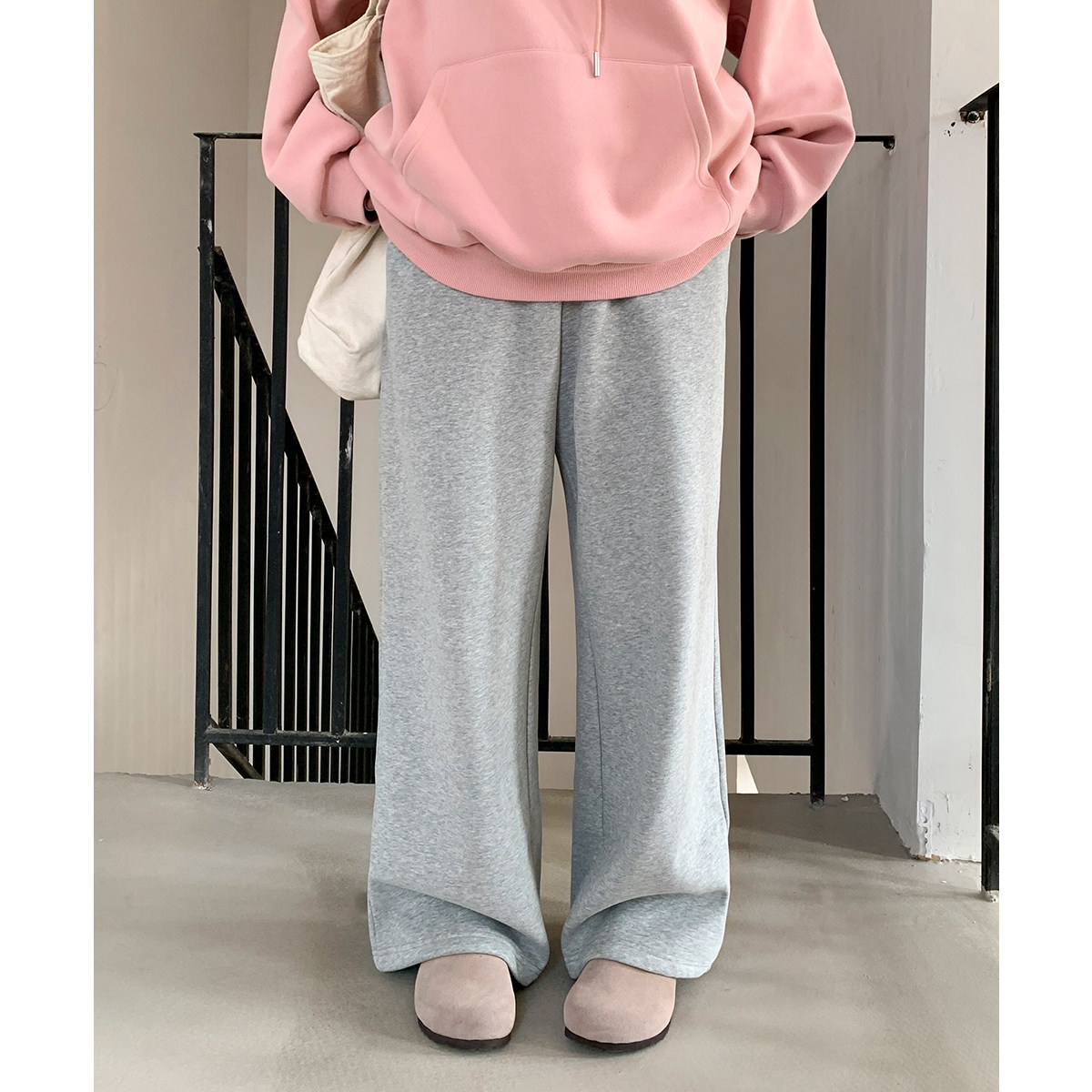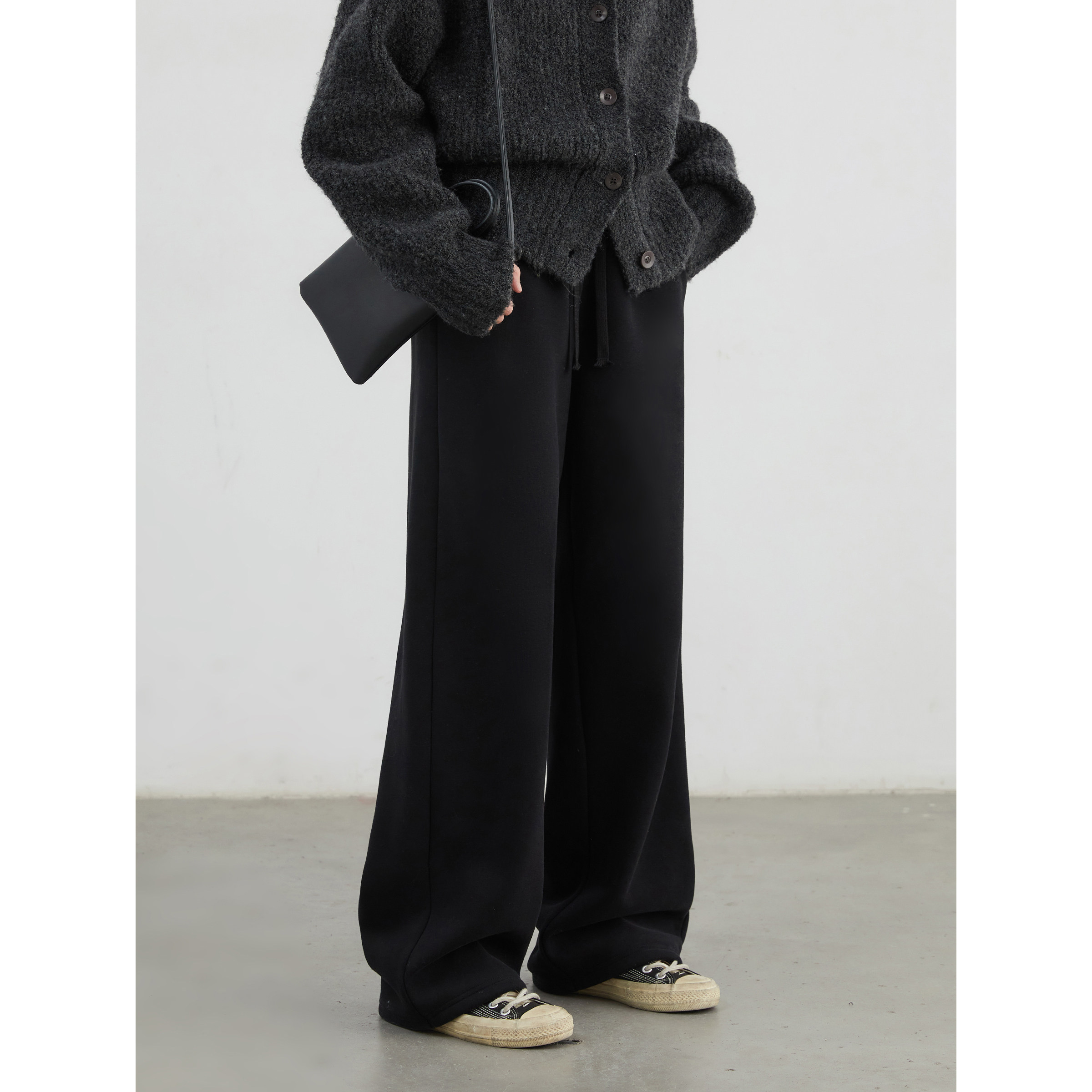 淘XFYSTYLE_加厚绒抽绳阔腿长裤女25冬季宽松显瘦保暖休闲运动卫裤